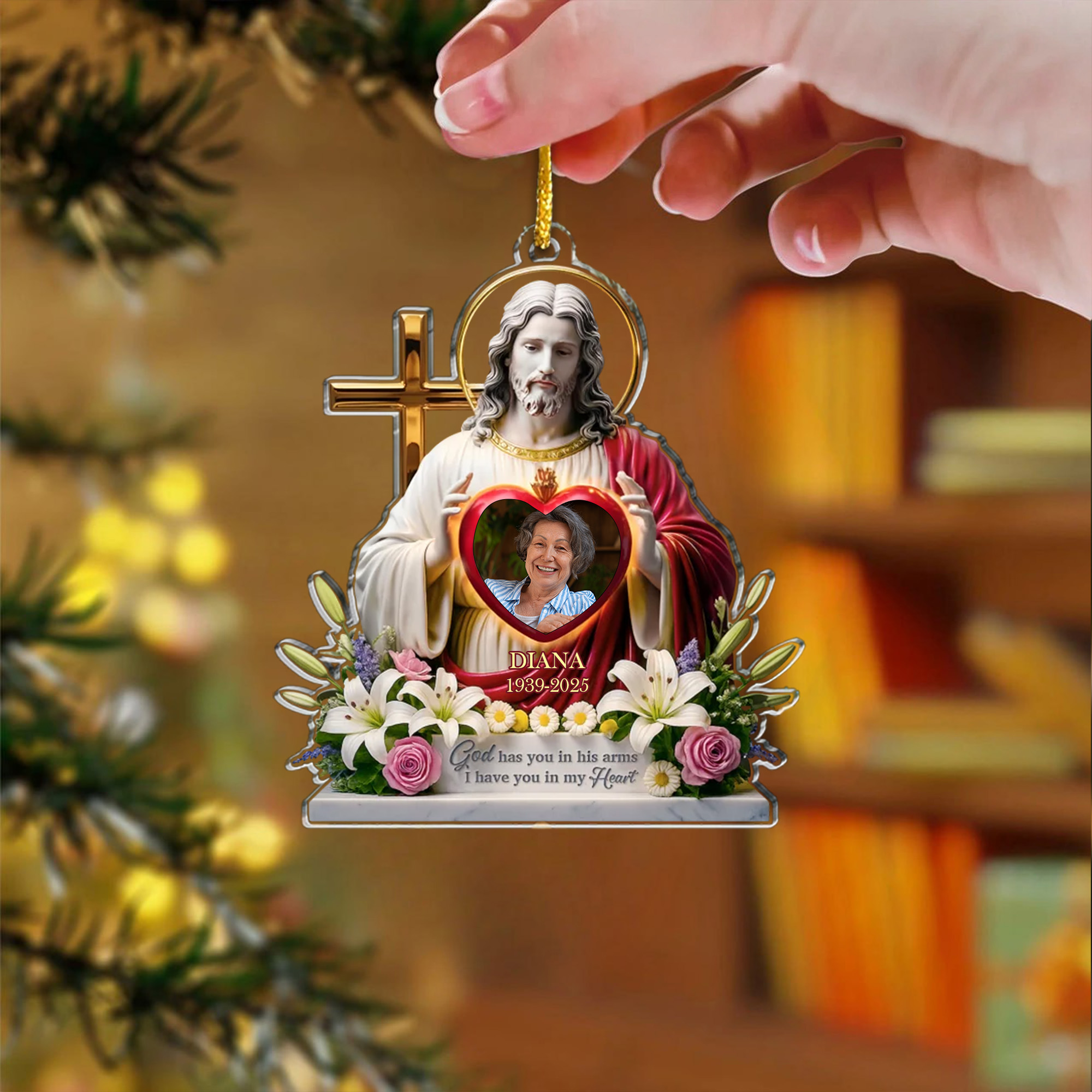 Personalized Memorial Jesus Christmas Ornament Acrylic God Has You in His Arms Sympathy Gift 2025-ASO-A9WFH