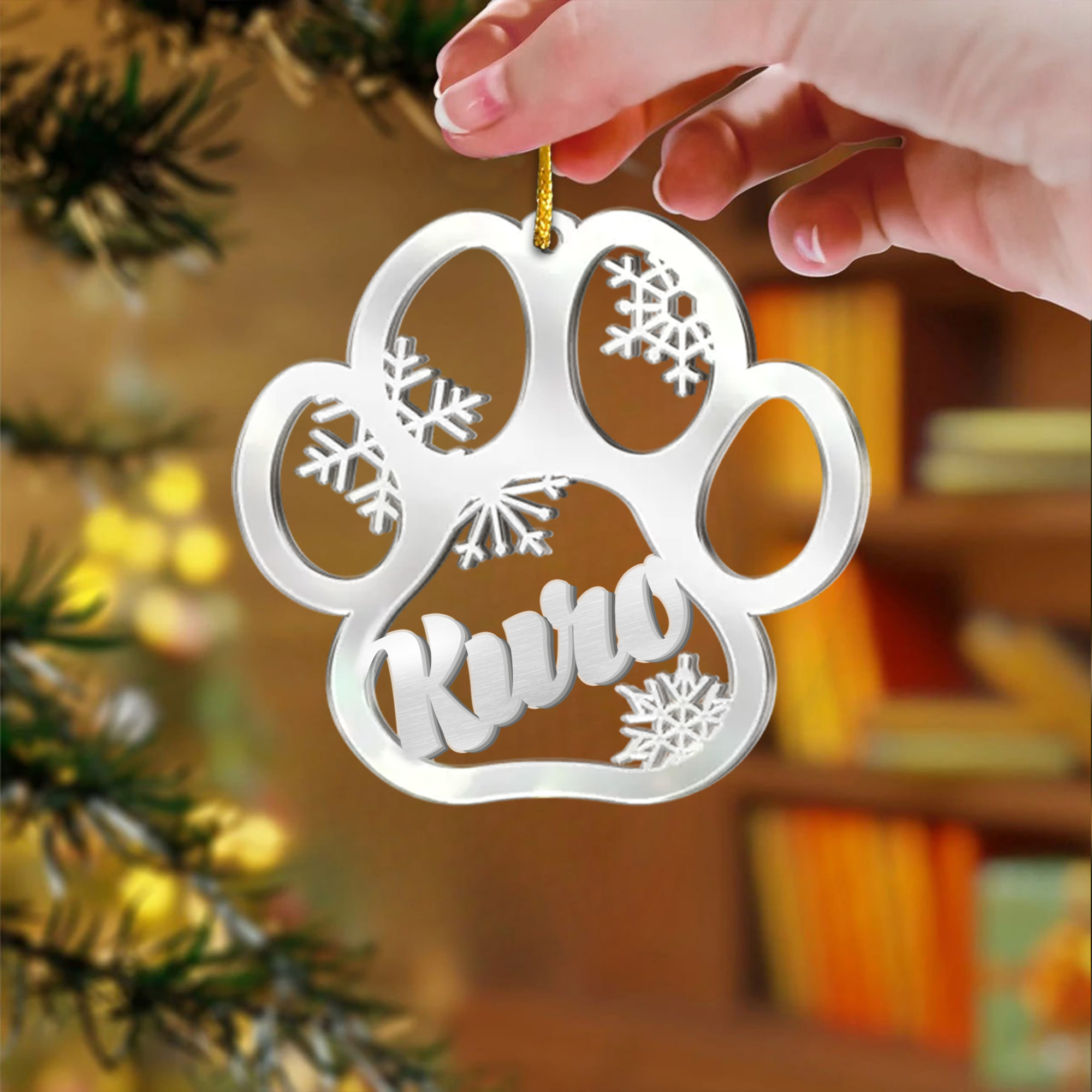 Personalized Paw Print Pet Ornament Acrylic Custom Name Christmas Decor for Dogs Cats – ASO-EZYHC