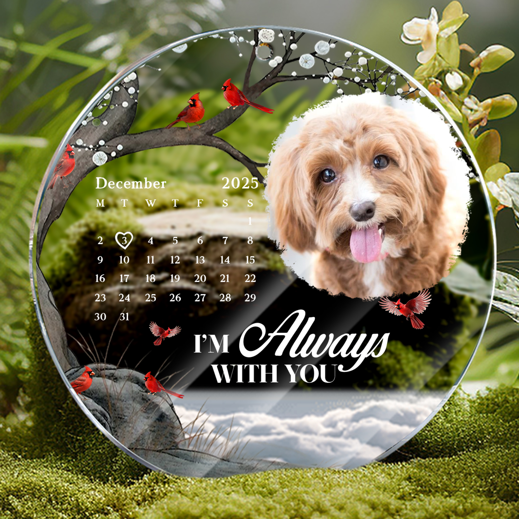 Personalized Pet Memorial Calendar Ornament w Photo Always With You Cardinal Keepsake Acrylic Xmas Gift-ARO-X63E3