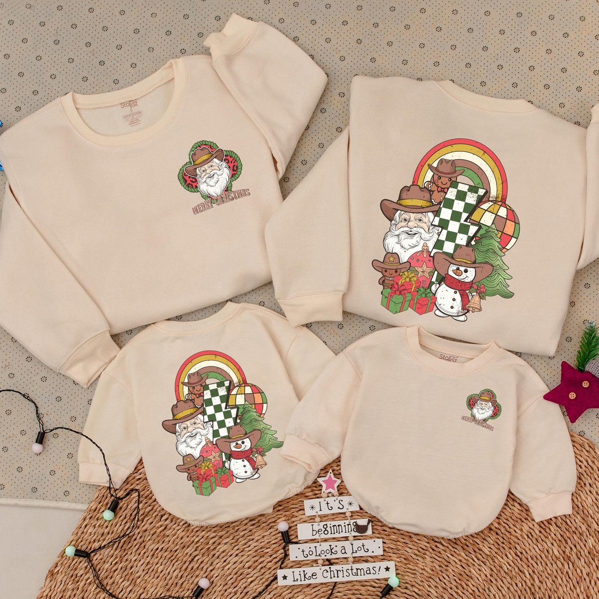 2 Sided Cowboy Santa Sweatshirt Merry Christmas Y’all Country Western Holiday Crewneck Family Sweat 182