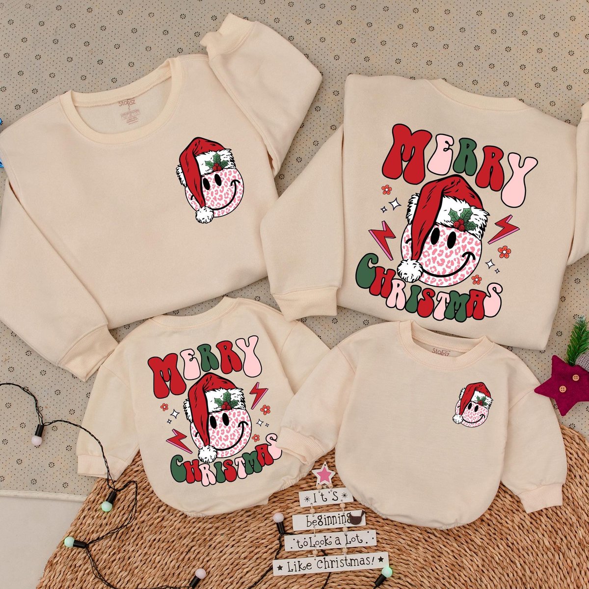 2 sided Groovy Merry Christmas Smiley Leopard Sweatshirt Baby Romper gift Family Matching Retro Holi 181