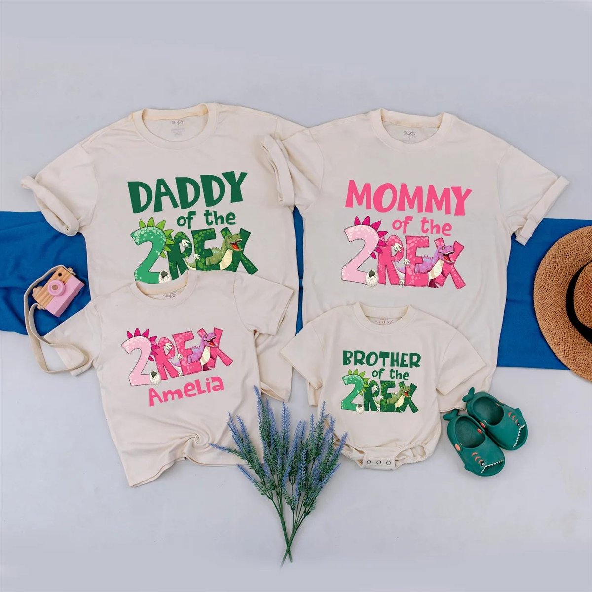 2nd Birthday Dinosaur Family Shirts 2 Rex Birthday Shirt for Mom Dad Sibling Baby Custom Name Dino P 430