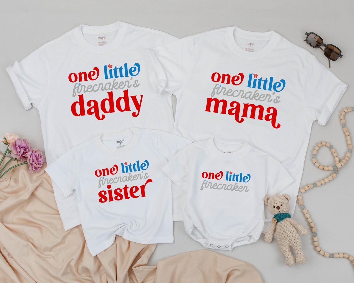 4th of July 1st Birthday Matching Shirts One Little Firecracker Fourth of July Birthday Outfit Dad a 167