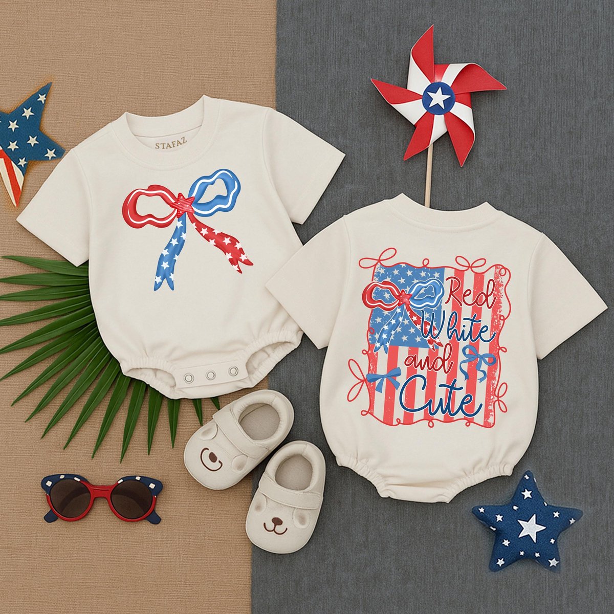 Red White and Cute Bubble Romper Baby Outfit 1st Birthday Memorial Day Trendy Red White Blue Baby Sh 431