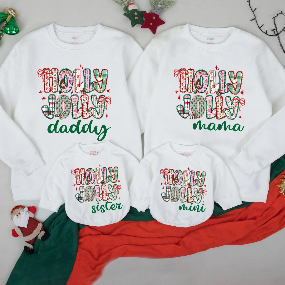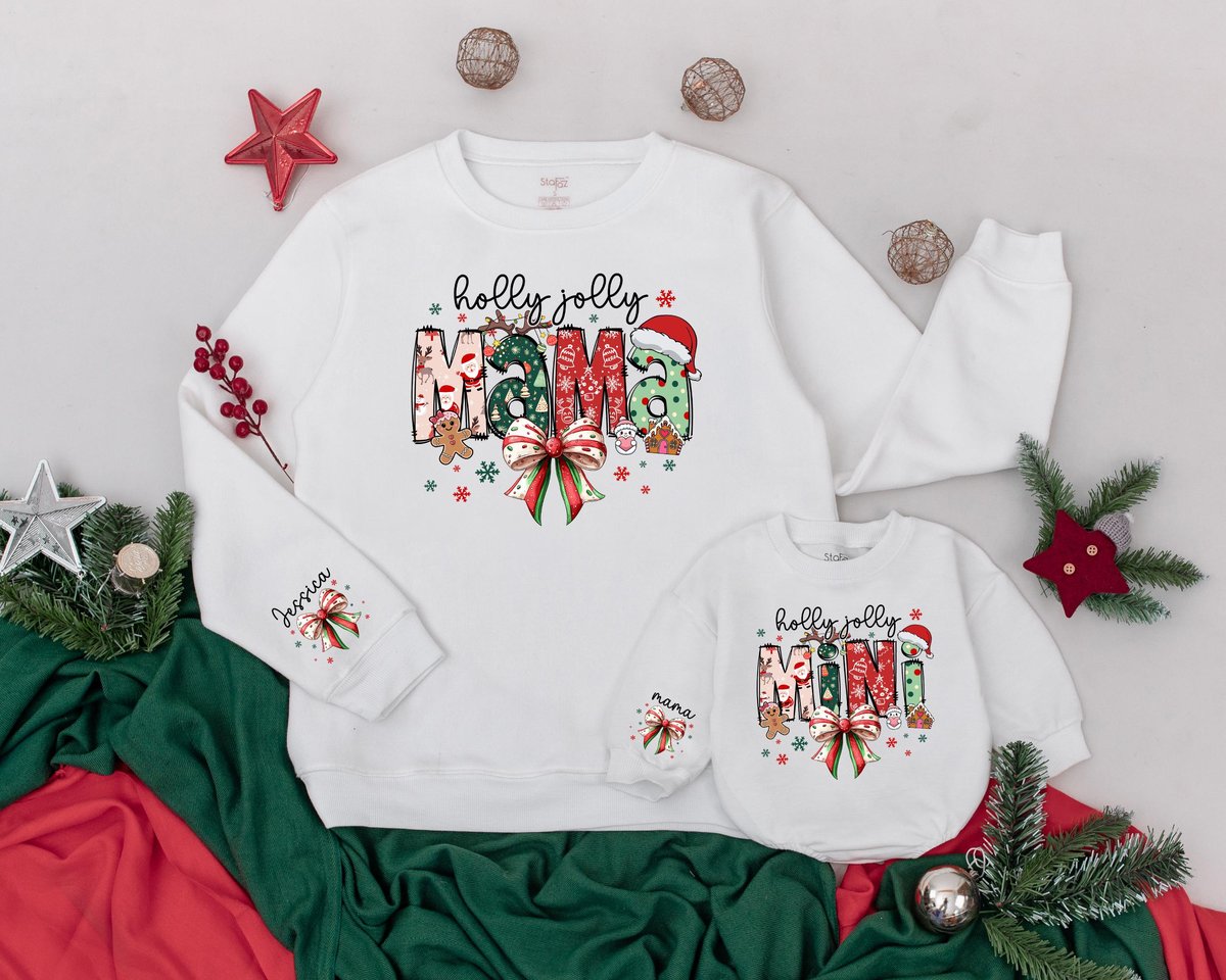 Custom Name Sweatshirt Holly Jolly Family Christmas Mommy and Me Sweaters Matching Family Outfit Mam 179