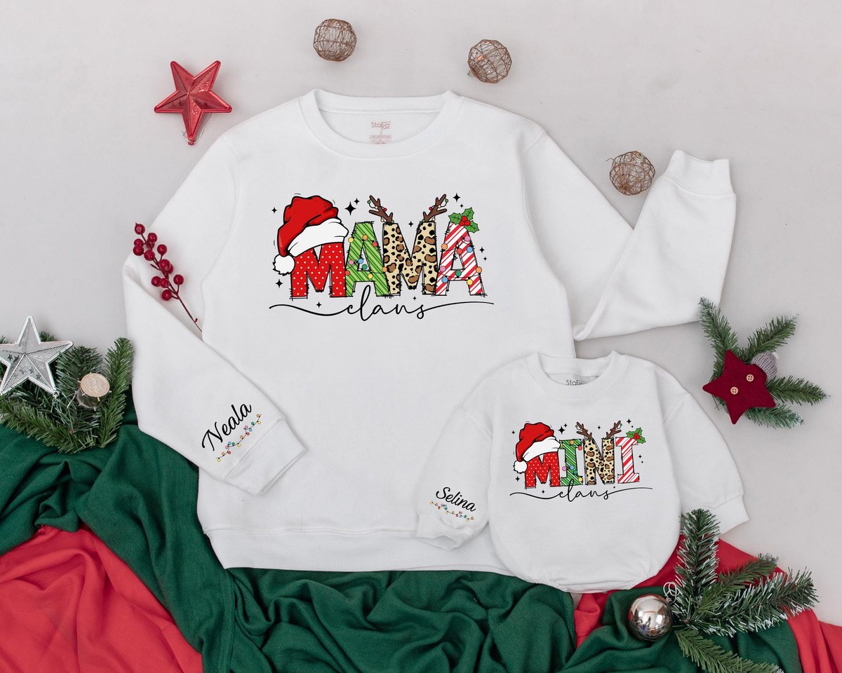 Custom Name Sweatshirt Mama and Mini Claus Christmas Mommy and Me Sweaters Matching Family Outfit Ma 178