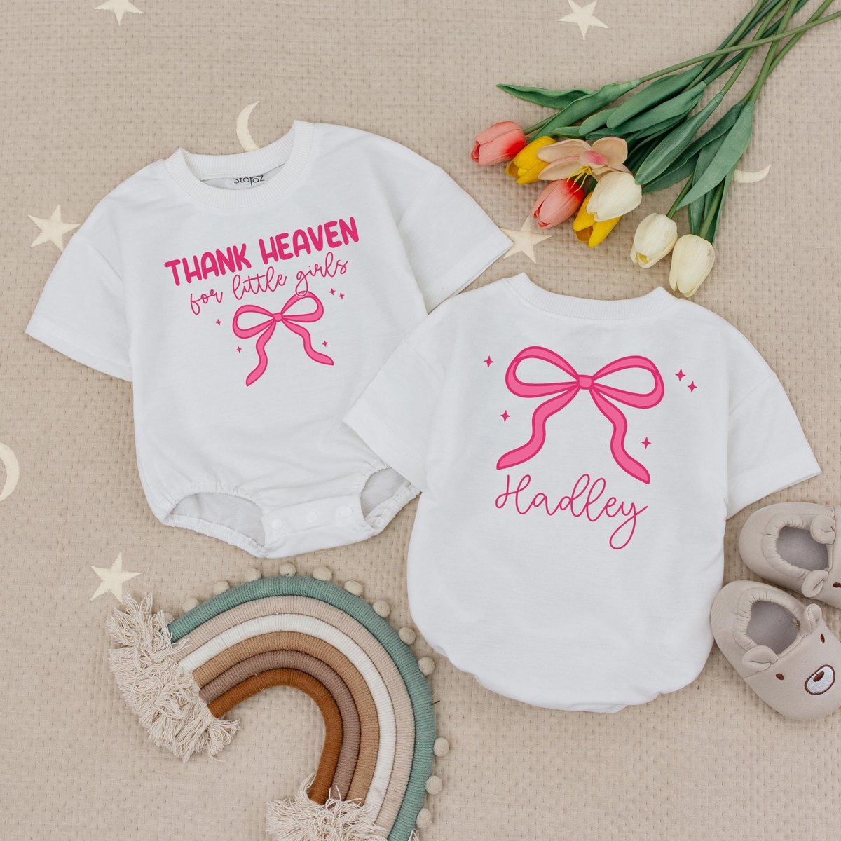 Custom Name Thank Heaven For Little Girls Baby Romper Religious Baby Christian Baby Romper God Lover