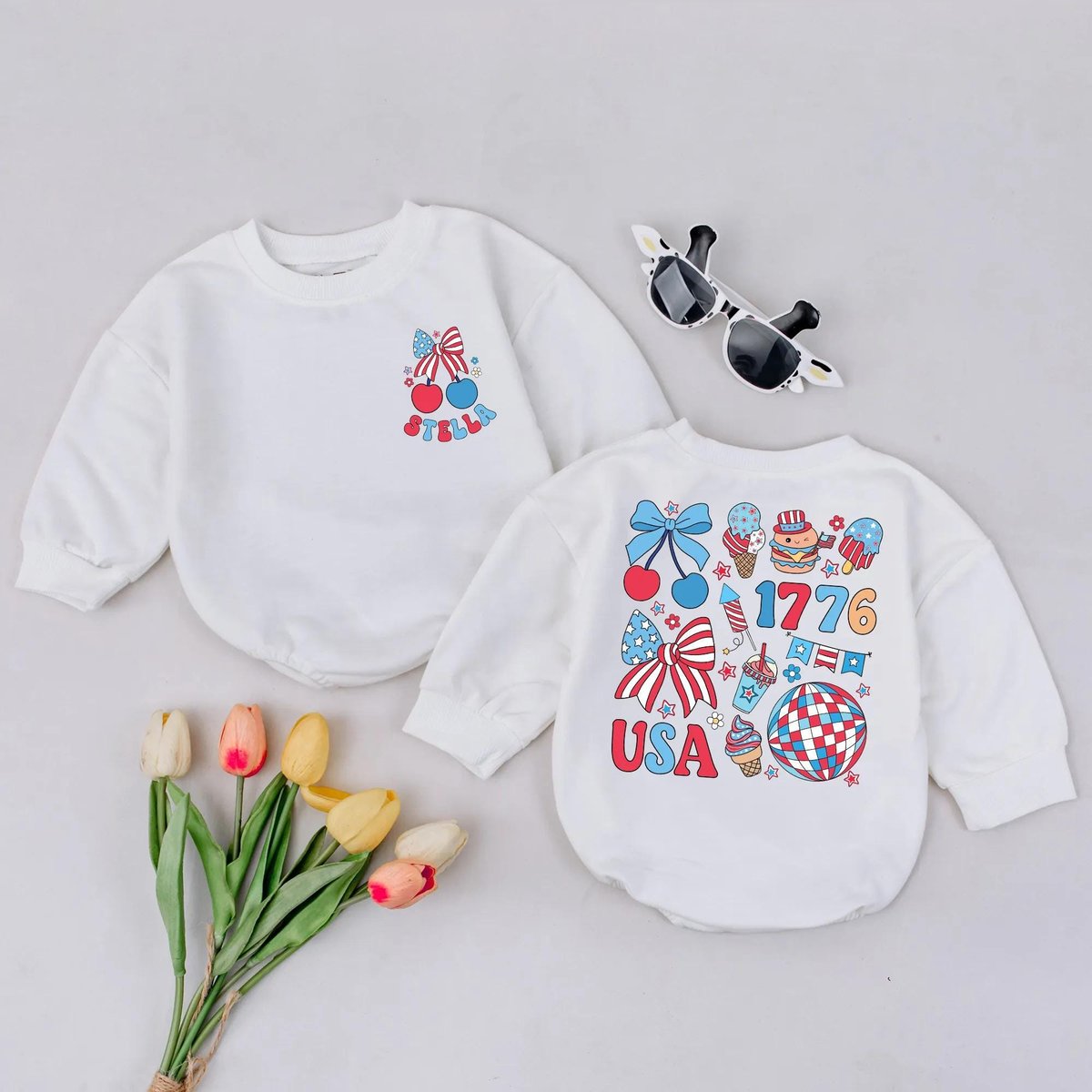 Custom Name USA Bubble Romper First 4th of July Baby Outfit Independence Day Clothes Patriotic Kid B 431