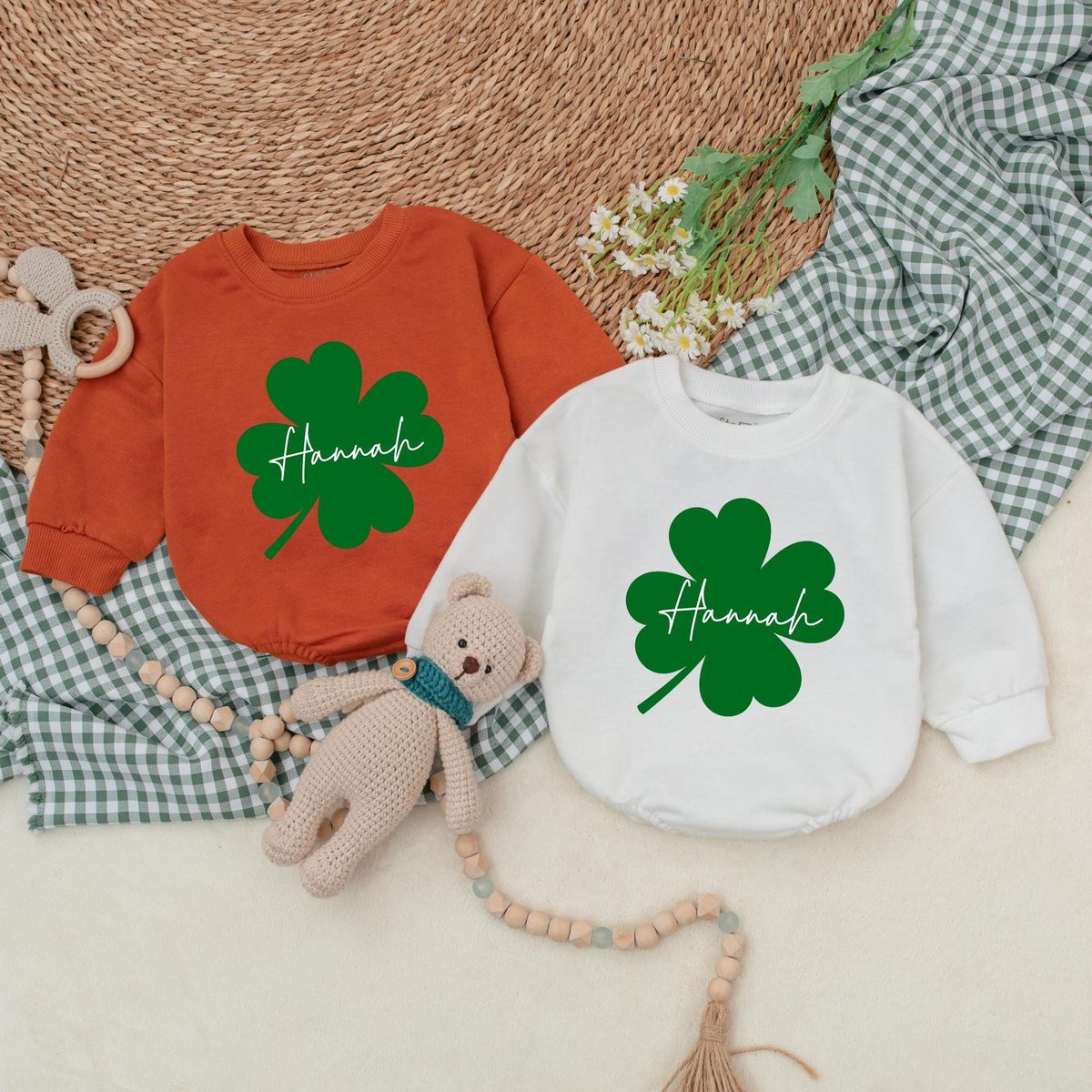 Personalized Green Clover Baby Romper Custom St Patrick’s Day Bodysuit Baby Patricks Day Outfit Fir 186