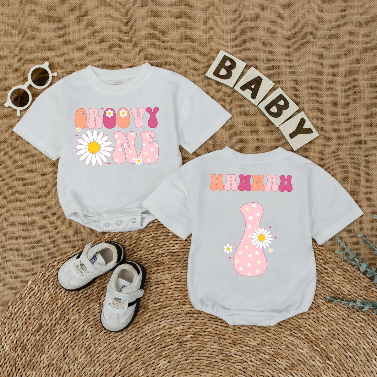 Personalized Groovy One Birthday Baby Romper Boho Daisy 1st Birthday Baby Bodysuit Retro First Birth 434