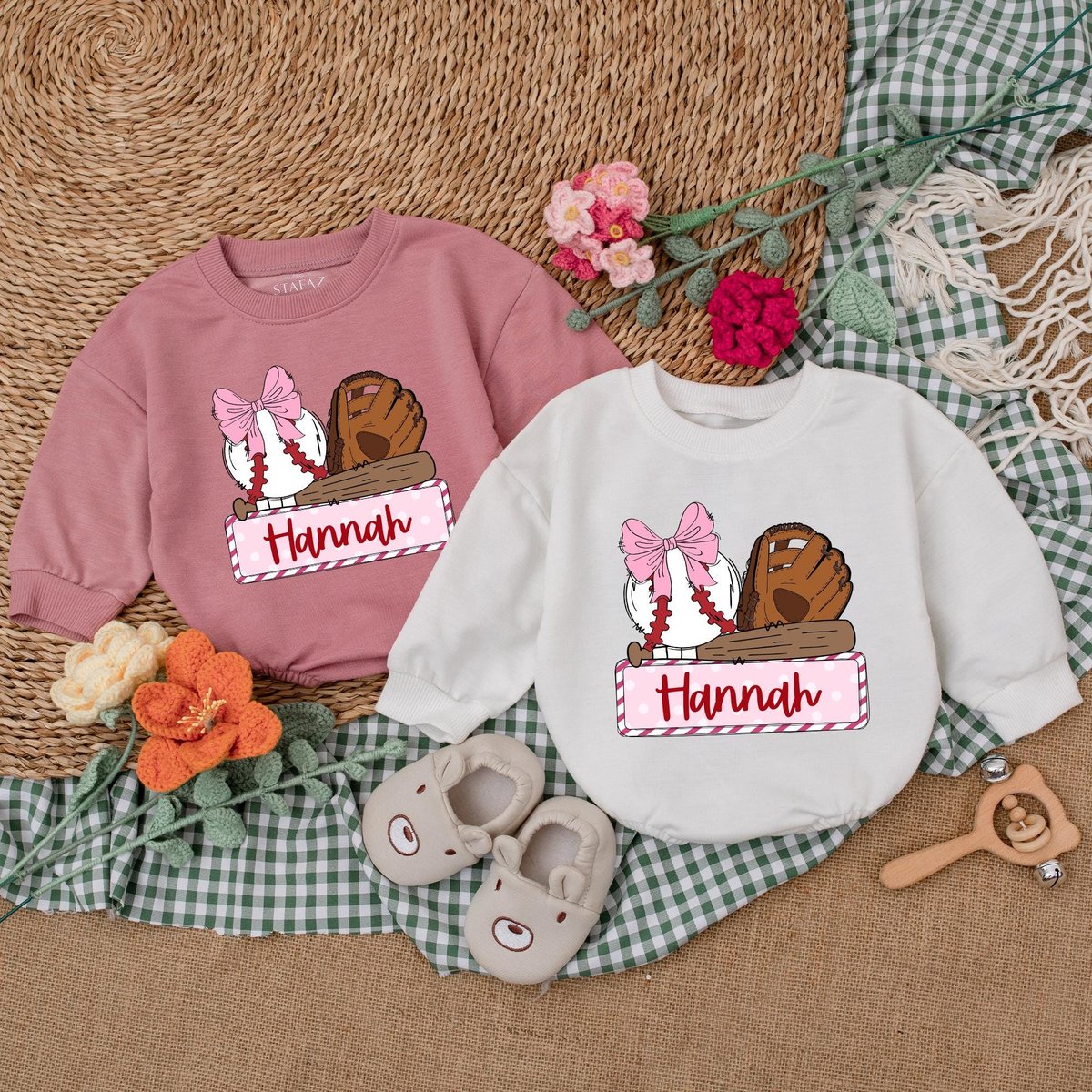 Personalized Girl Baseball Game Day Romper Baseball Sister Baby Bodysuit Baseball Bow Baseball Baby 186