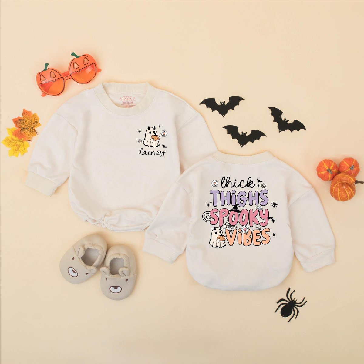 Custom Thick Thighs Spooky Vibes Bubble Romper Personalized Halloween Baby Bodysuit Funny Ghost Baby 432