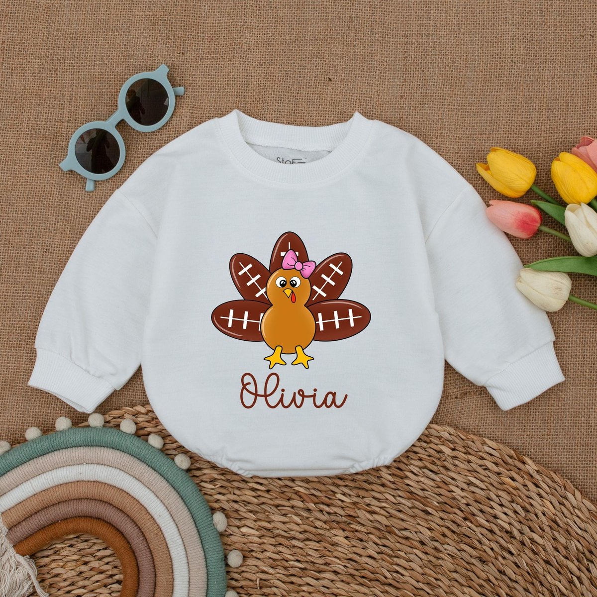 Custom Turkey Football Romper Thanksgiving Bodysuit Little Turkey Romper Baby Thanksgiving Outfit Fa 176