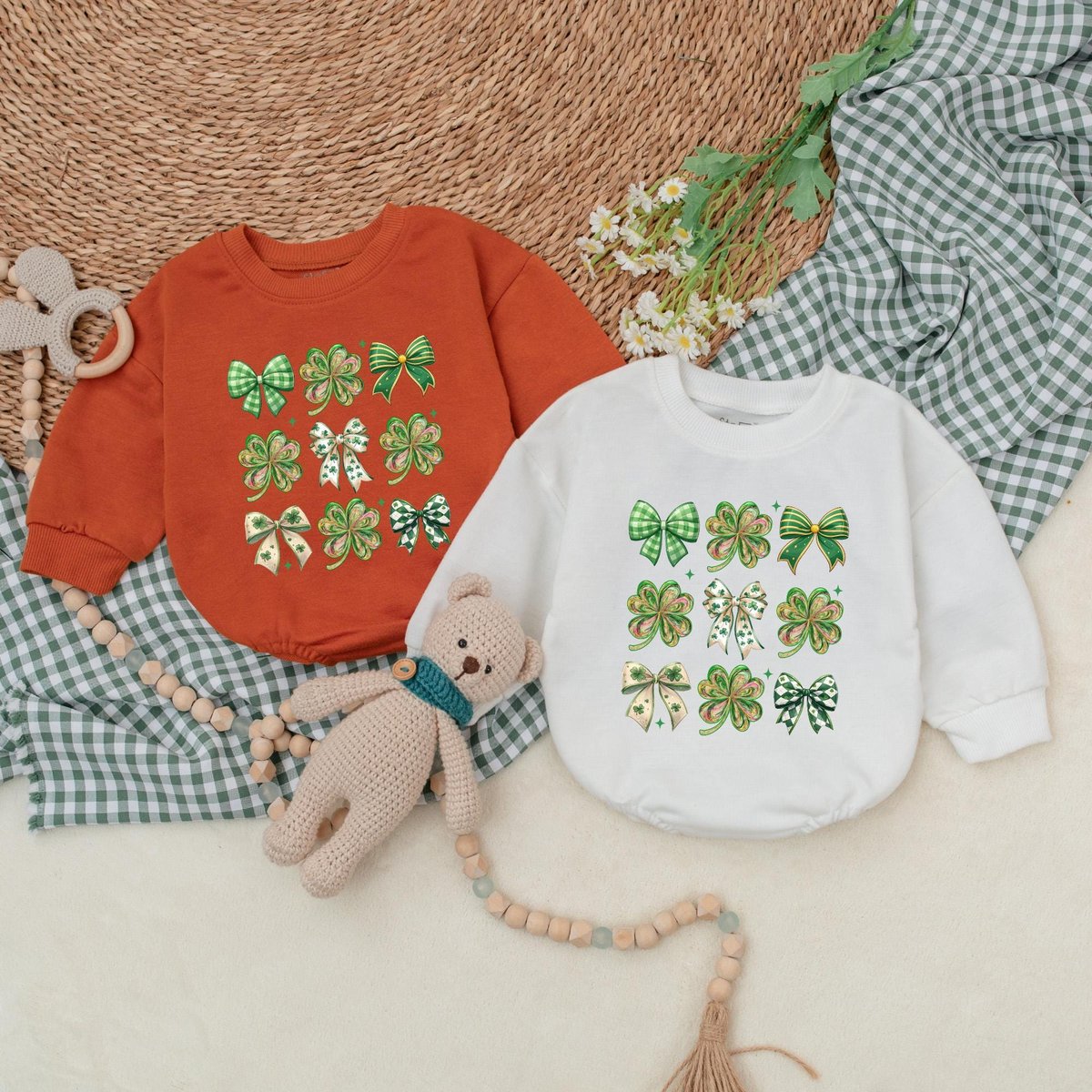 Patrick’s Day Bow Baby Romper Green Clover Bow Baby Bodysuit St Patrick’s Day Romper Baby Patrick3 186