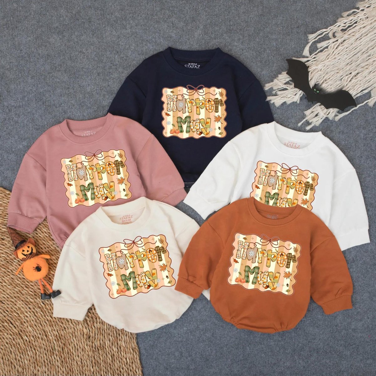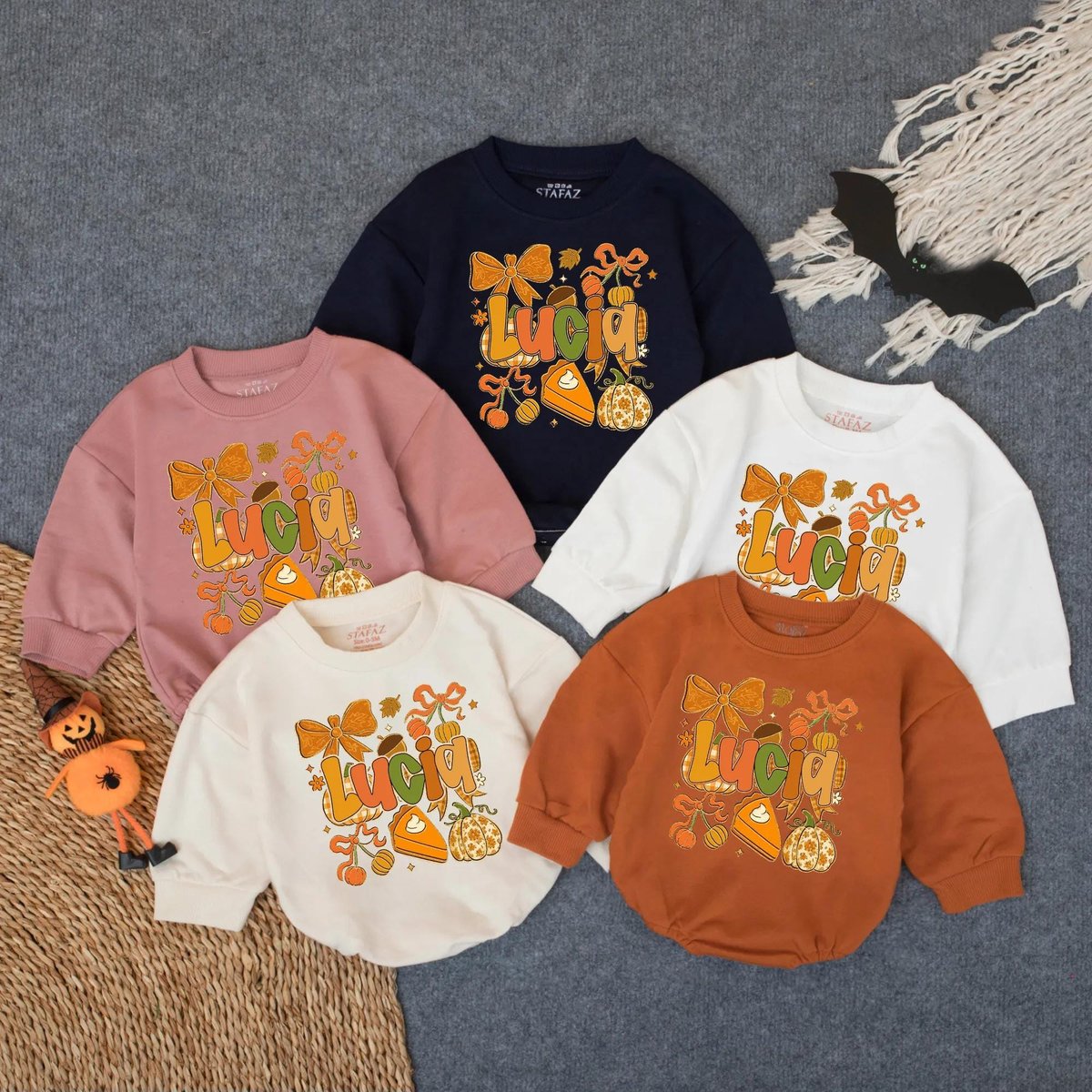 Personalized Thanksgiving Pumpkin Bow Bubble Romper Girl Fall OutfitAutumn Infant Apparel Thanksgivi 432