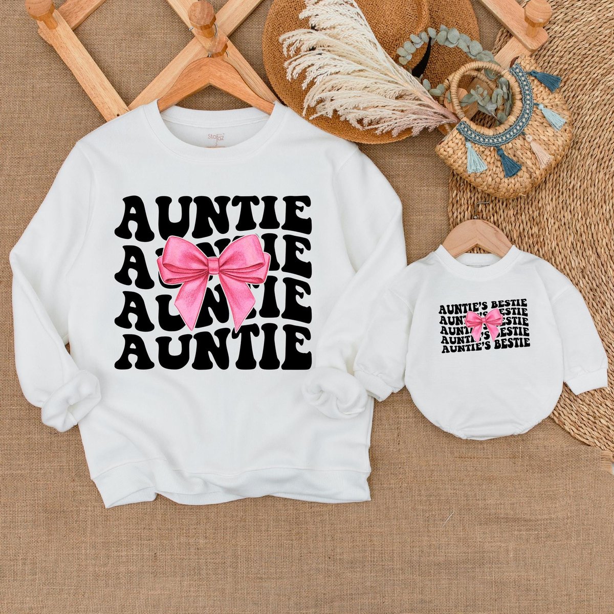 Auntie And Auntie’s Bestie Sweatshirt Aunt And Aunt’s Bestie Shirts Aunt Niece Bow Outfit Aunt And 434