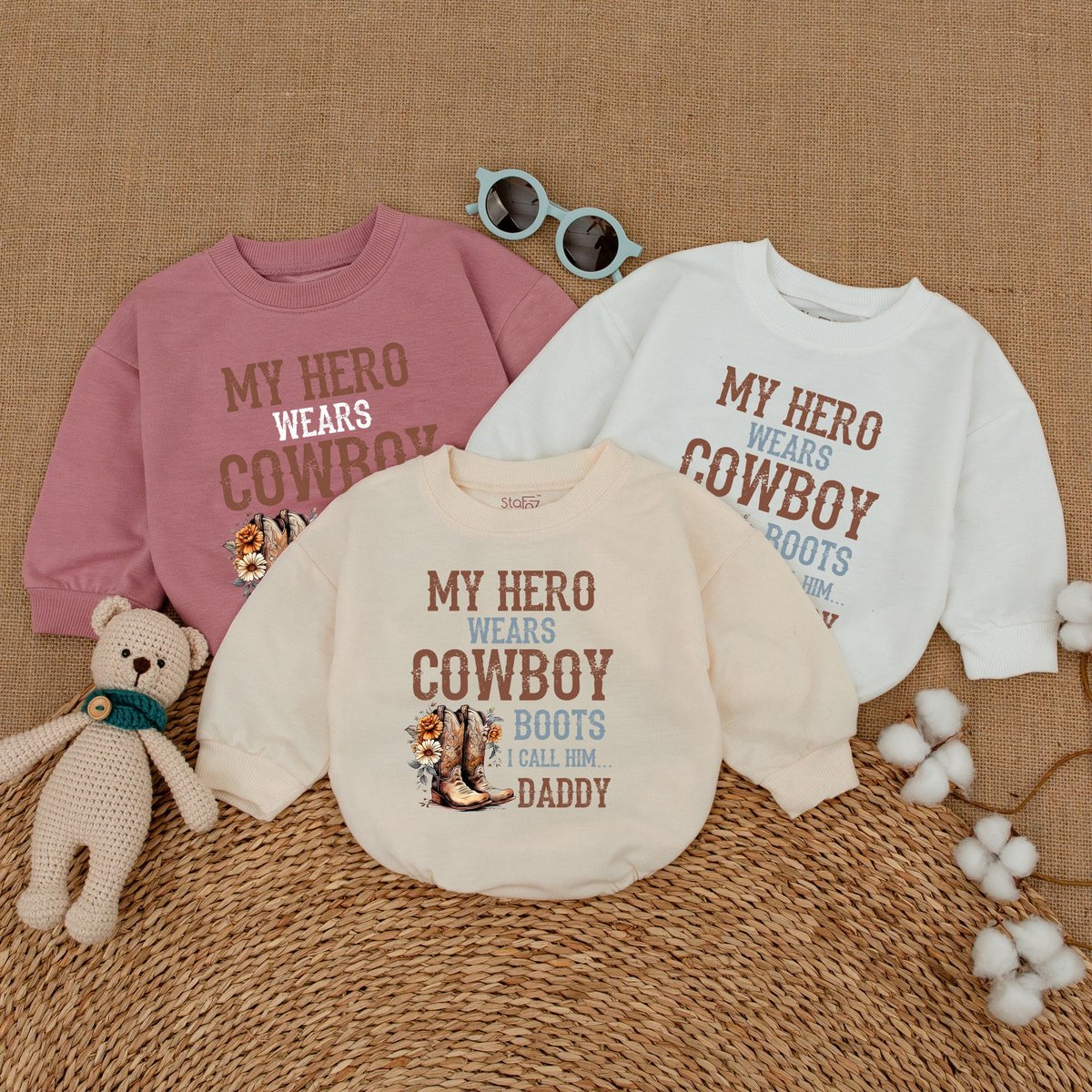 My Hero Wears Cowboy Boots I Call Him Daddy Romper Father’s Day Bodysuit Western Baby Clothes Baby 171