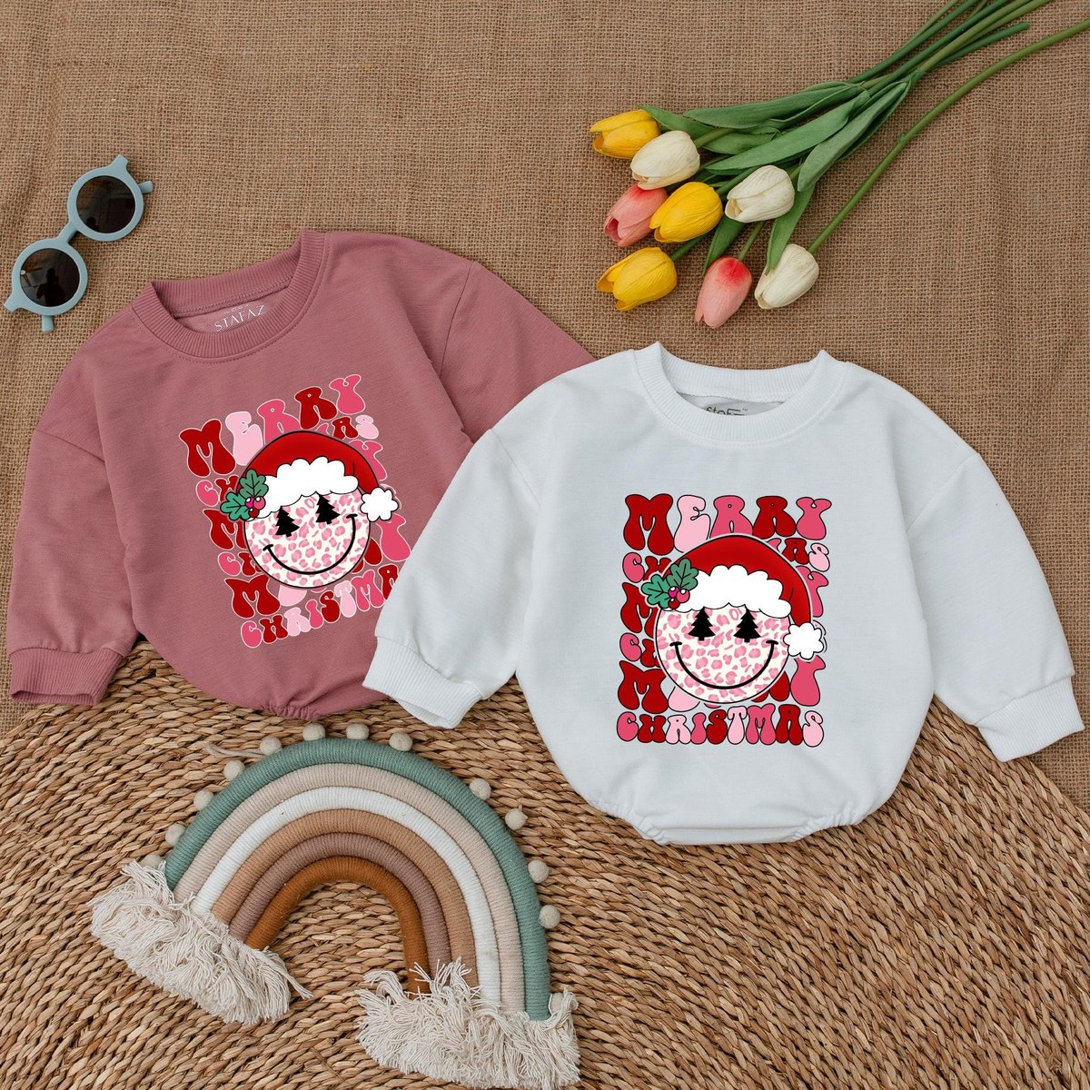 Merry Christmas Smiley Face Romper Christmas Season Baby Bodysuit Baby Christmas Outfit First Christ 180