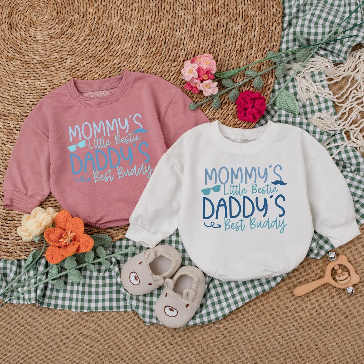 Mommy’s Little Bestie Baby Romper Daddy’s Buddy Baby Bodysuit Mama’s Boy Outfit Trendy Father’s 189