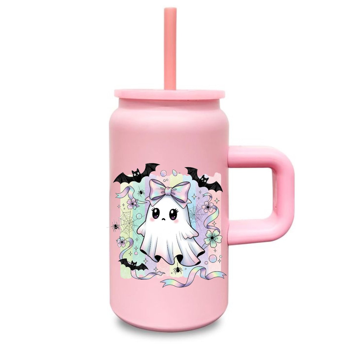 Cute Coquette Ghost PNG Preppy Halloween Shirt Design Iridescent Boo Pink Pumpkin Fall Sublimation W 434