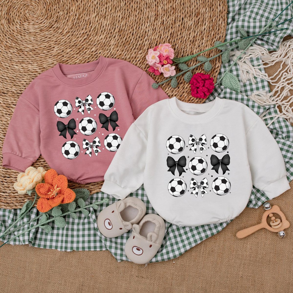 Cute Soccer Bow Baby Romper Vintage Soccer Bow Baby Bodysuit Gameday Outfit Baby Girl Clothes Game D 187