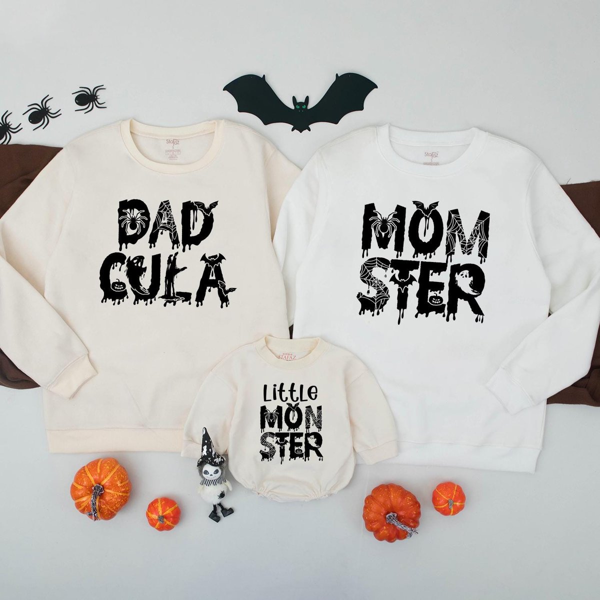 Dadcula Momster Little Monster Matching Halloween Sweatshirts Fall Family Outfits Mommy and Me Hallo 436