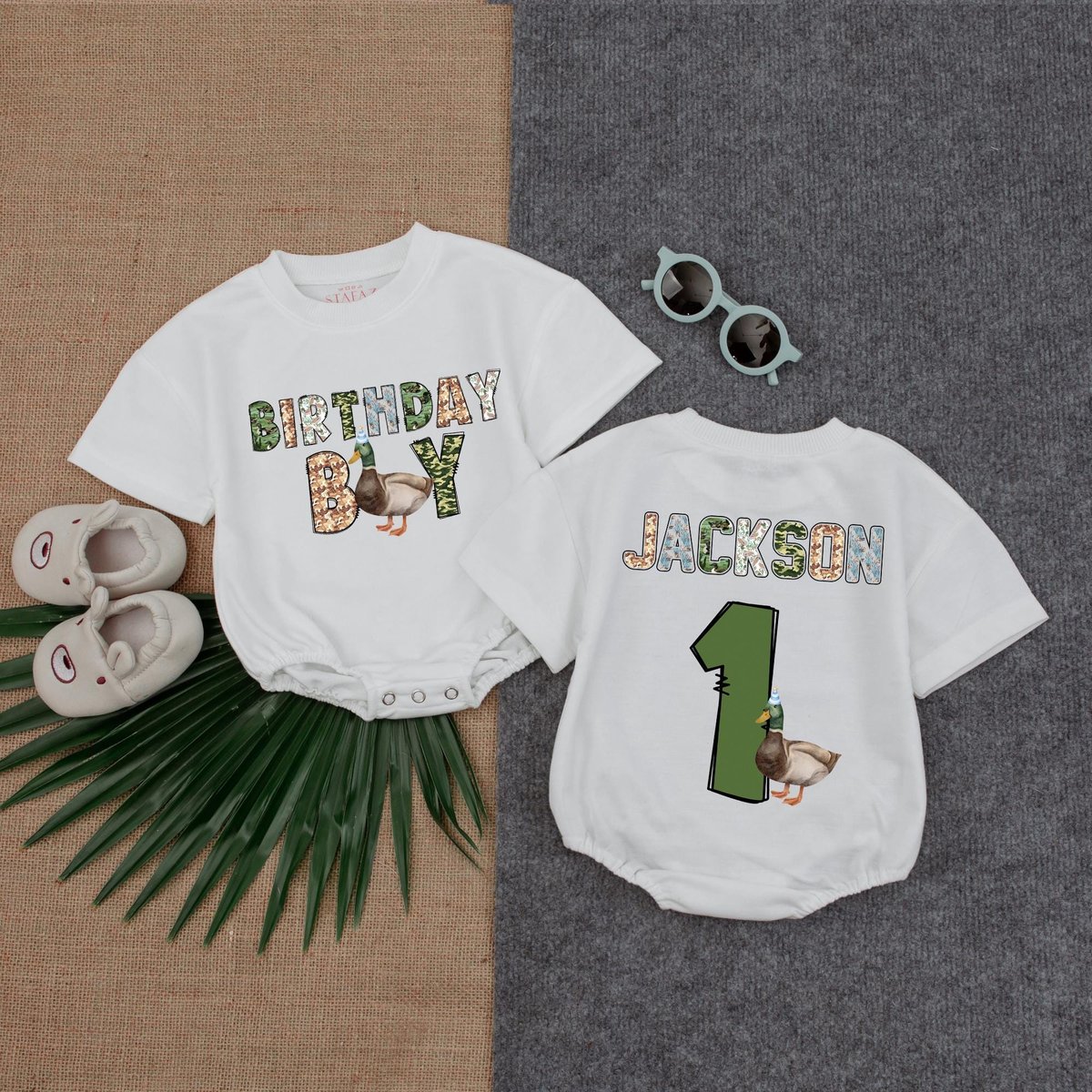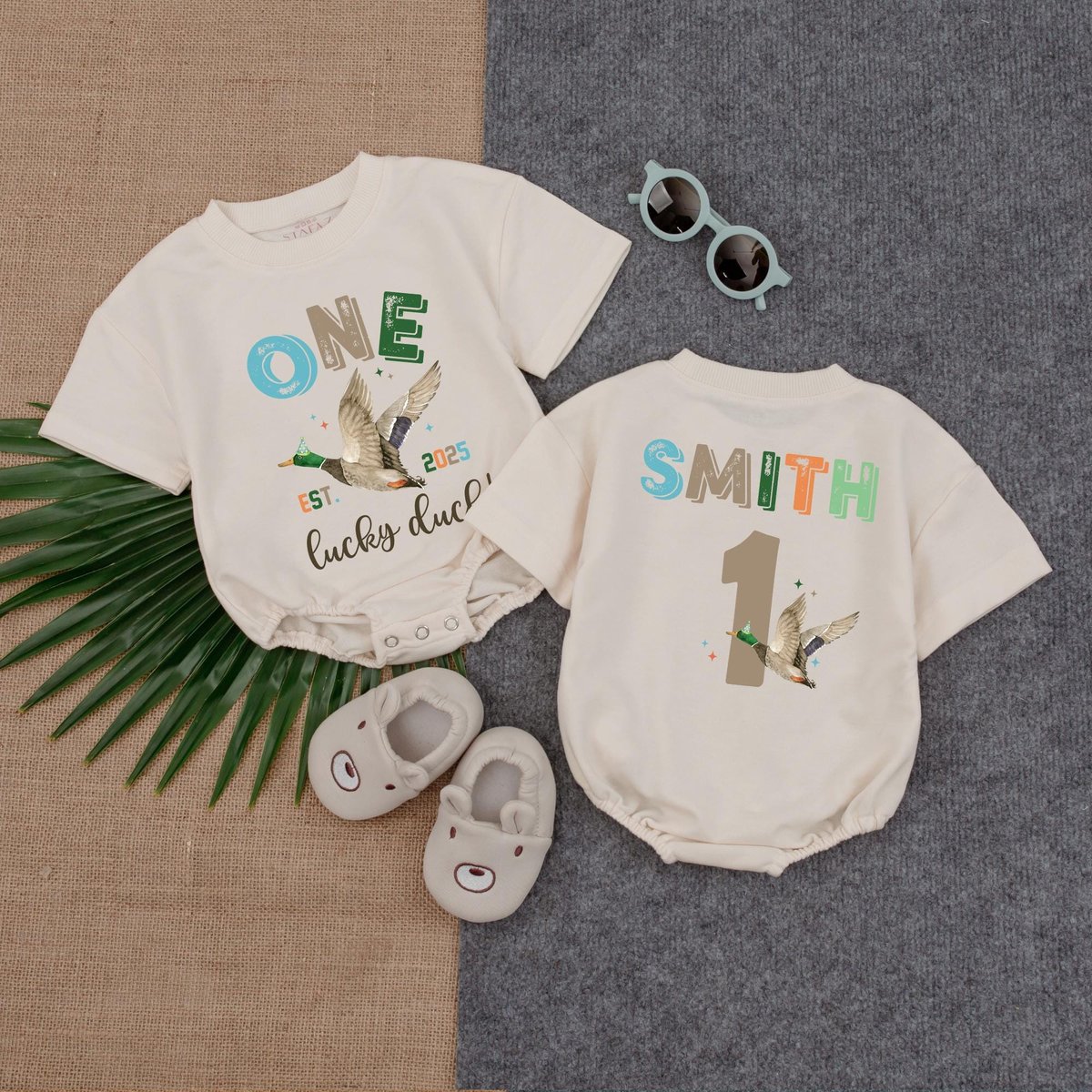 Personalized One Lucky Duck Baby Romper Short Sleeves Duck Birthday Bodysuit 1St Birthday Romper Mal 187