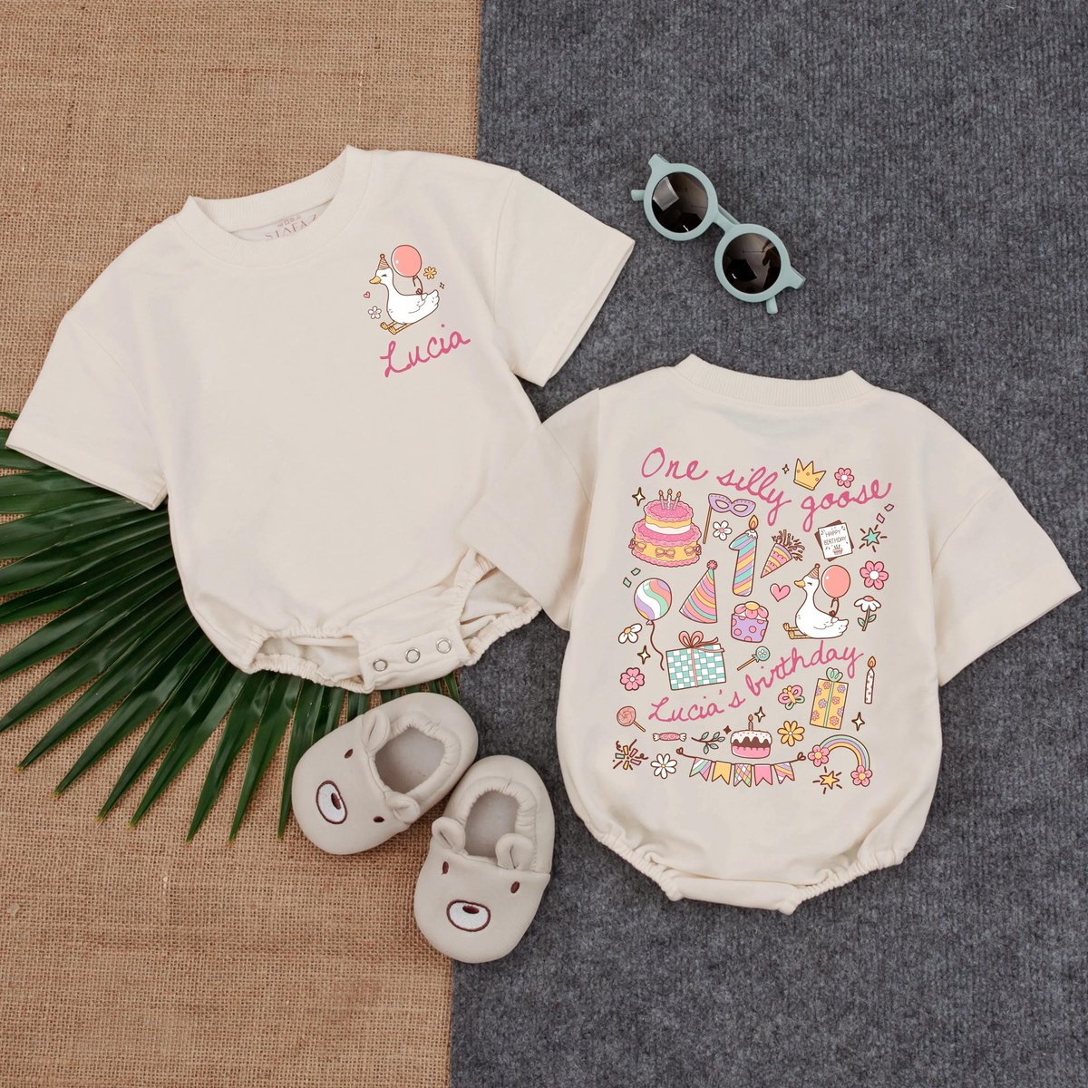 Personalized One Silly Goose Birthday Baby Romper Cute Birthday Baby 1st Birthday Silly Goose Romper 434