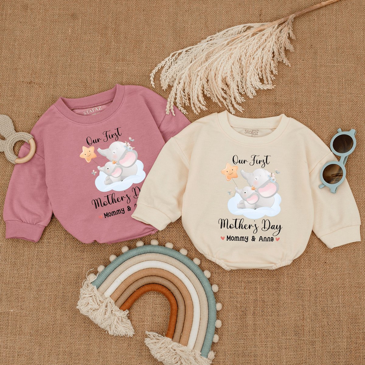 Personalized Our First Mother’s Day Bubble Romper 1st Mother’s Day Boy Bodysuit Best Mom Ever New 189