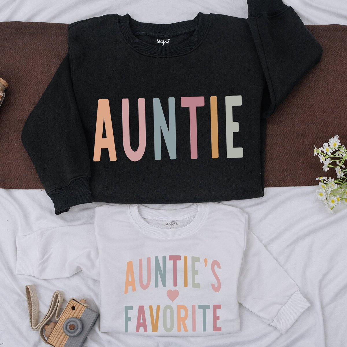 Auntie Me Sweatshirt Auntie And Auntie’s Favorite Shirt Custom Matching Family Sweatshirt baby romp 162