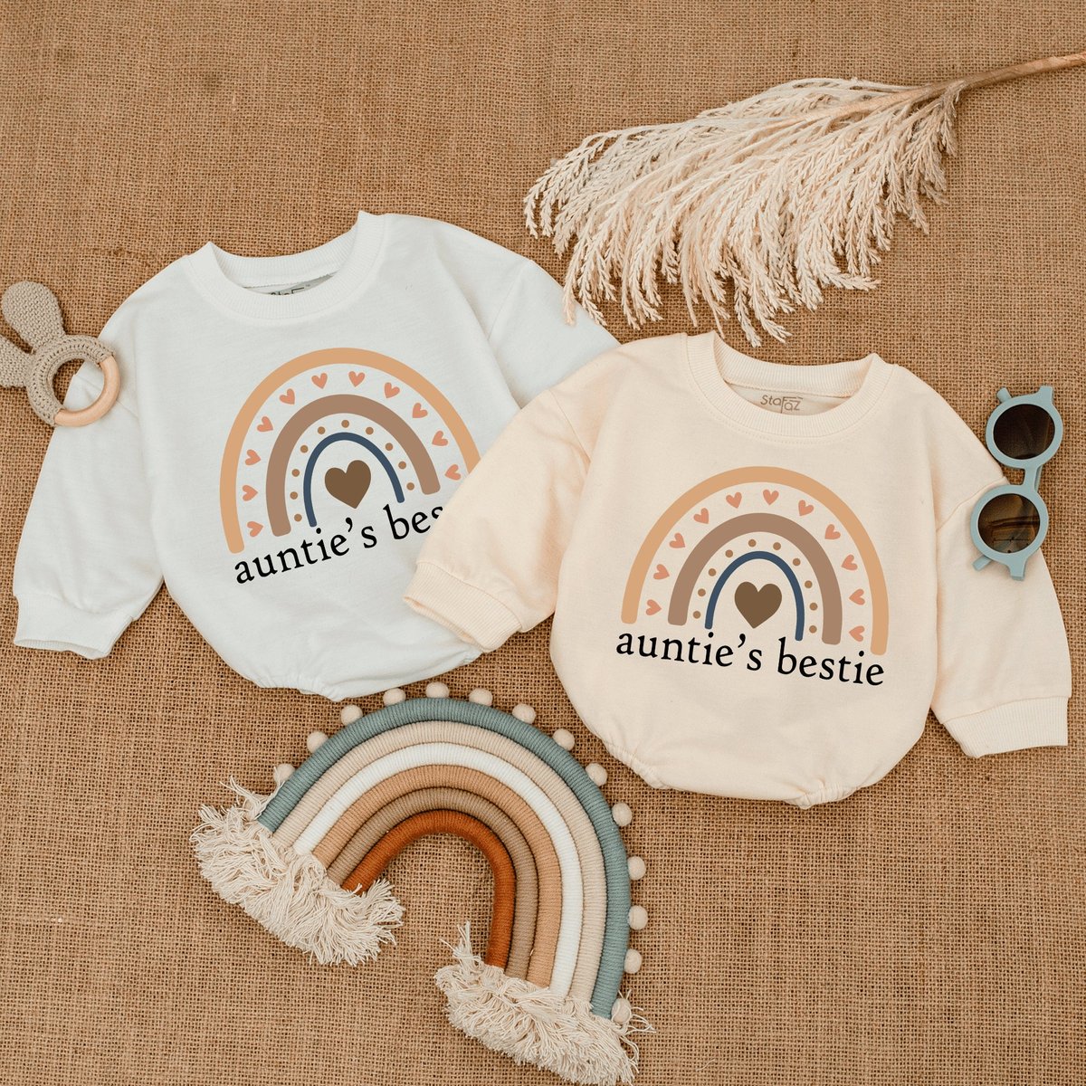 Auntie’s Bestie Rainbow Romper Baby Romper Newborn Romper Gift from Aunt Auntie Baby Shirt Pregnanc 167