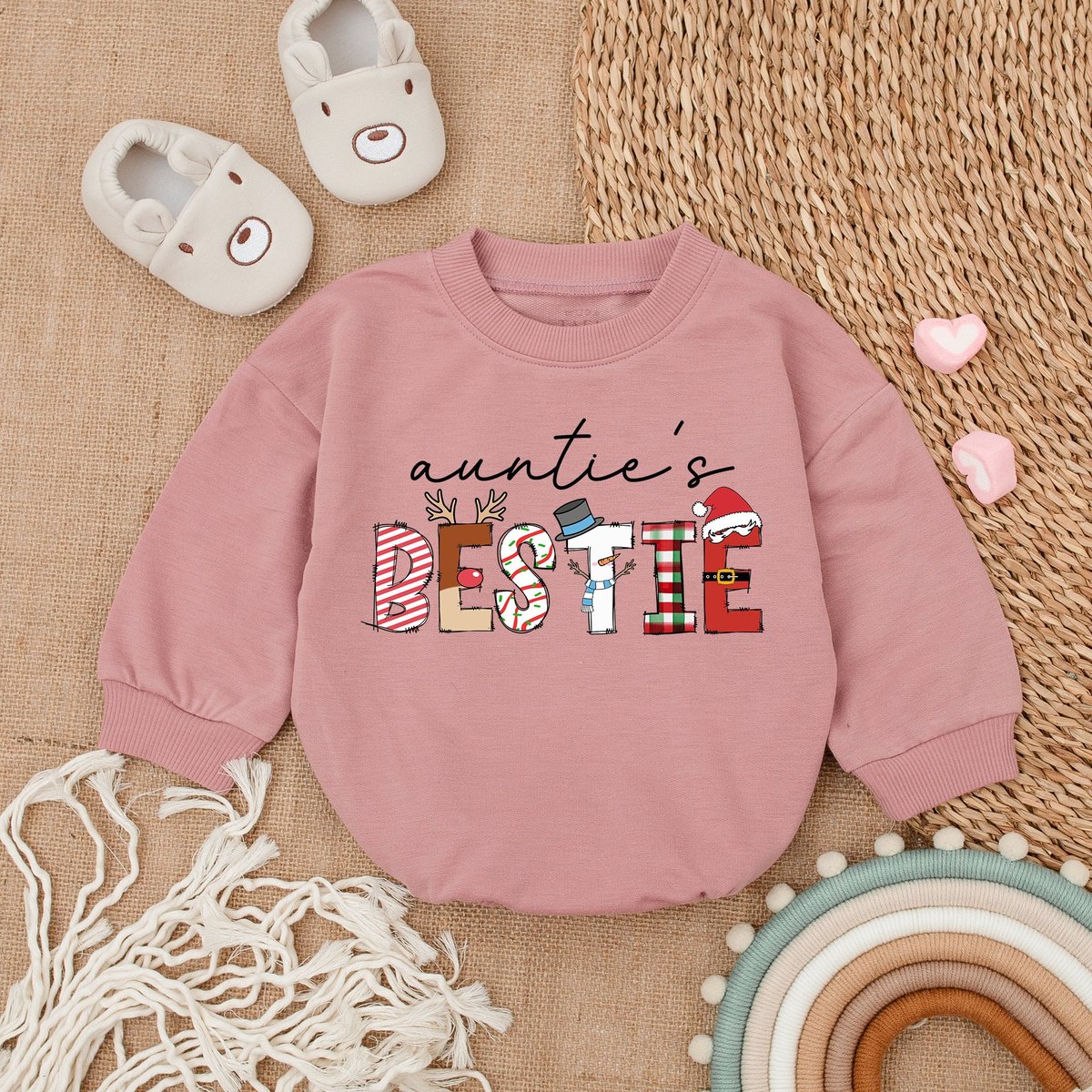 Auntie’s Bestie Romper Baby Cozy Clothes Christmas Bodysuit Baby Outfit Oversized Long Sleeve Bodys