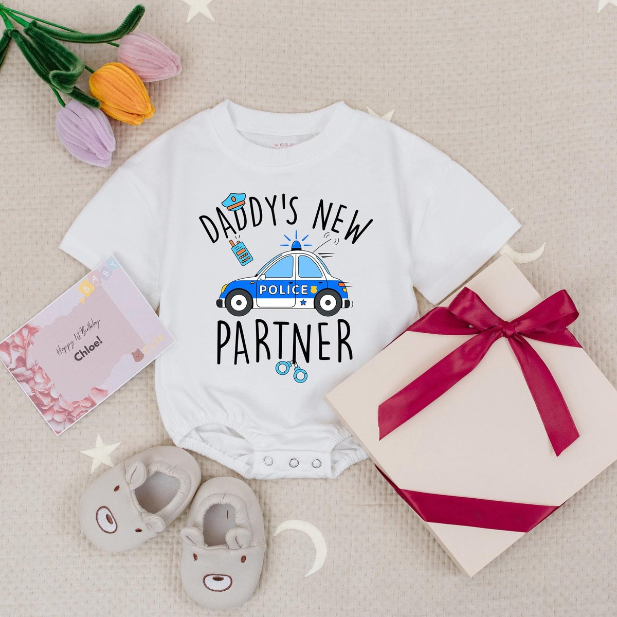 Daddy’s New Partner Police Bubble Romper Daddy Police Officer Baby Outfit Police Baby Shower Gifts