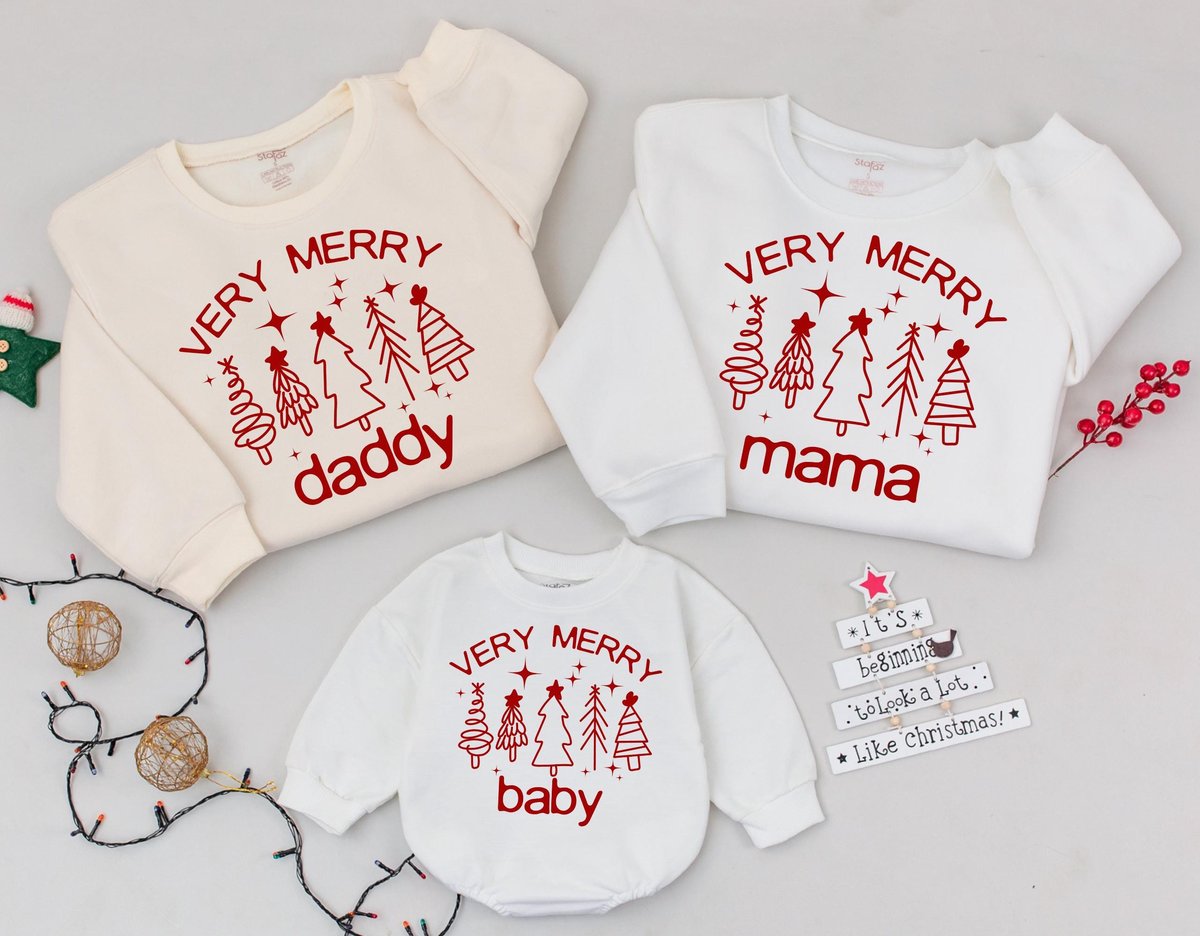 Personalized Very Merry Christmas Sweatshirts Retro Matching Sweater Toddler Christmas clothes Xmas 181