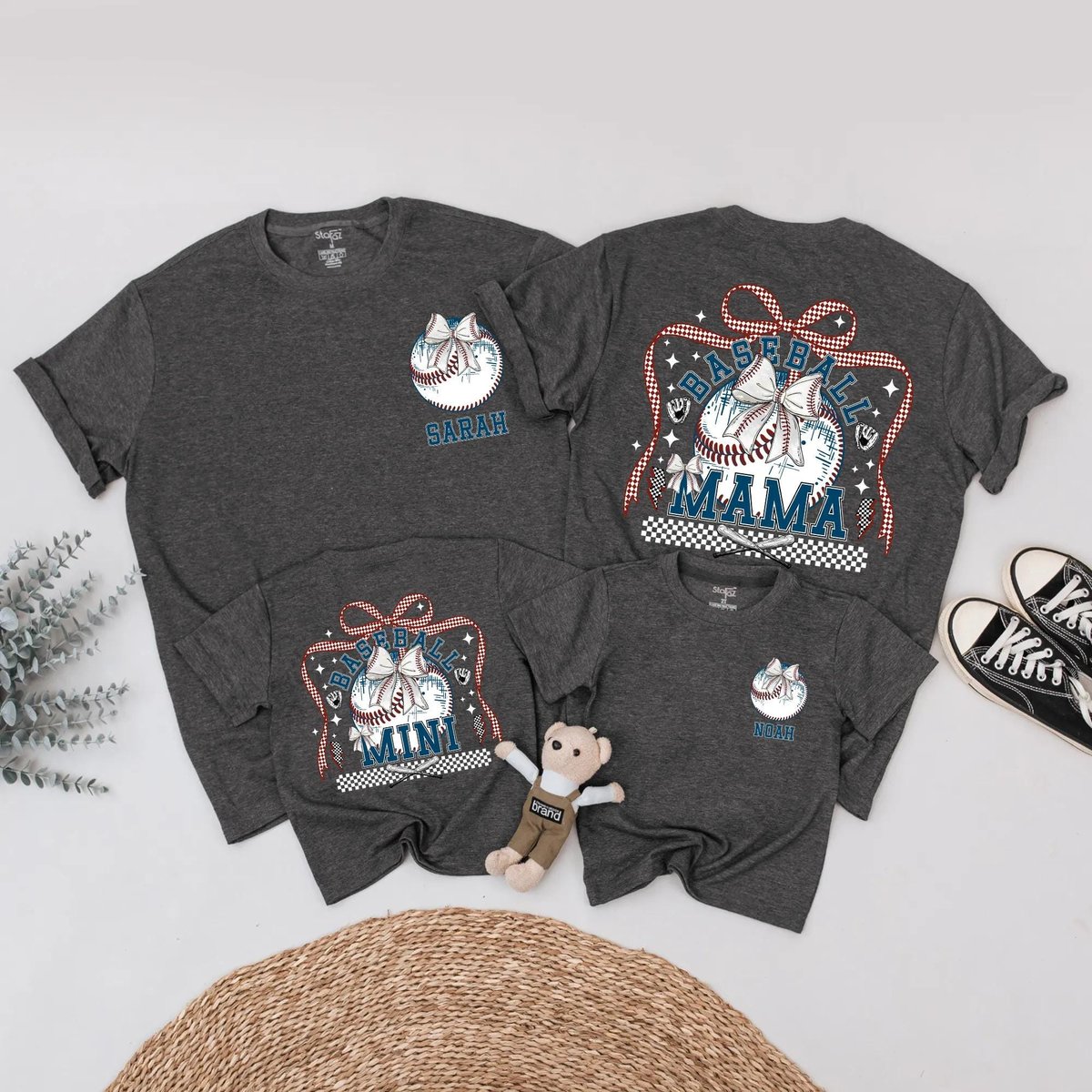 Retro Baseball Mama And Mini Shirt Trendy Baseball Bow Shirt Matching Family Baseball Shirt Custom B 430