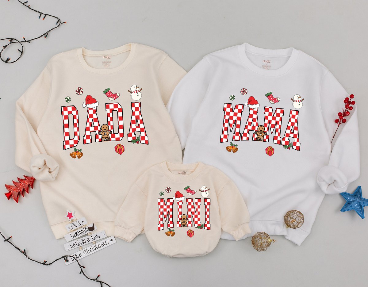 Retro Family Christmas Sweatshirt Mama Dada and Mini Holiday Sweater Matching Family Outfits cute Mo 178