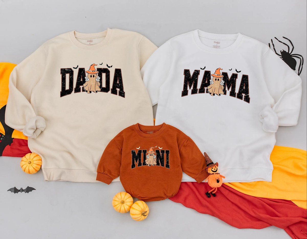 Retro Halloween Family Matching Sweatshirt Ghost Sweaters Mommy and Me Shirt My 1st Halloween Family 434