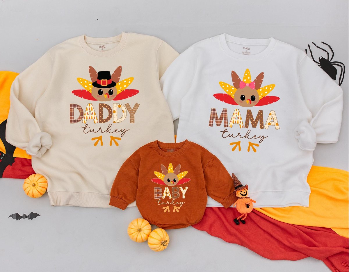 Family Turkey Sweaters mommy and me thanksgiving Retro Fall Thanksgiving Sweatshirt Matching Outfits 179