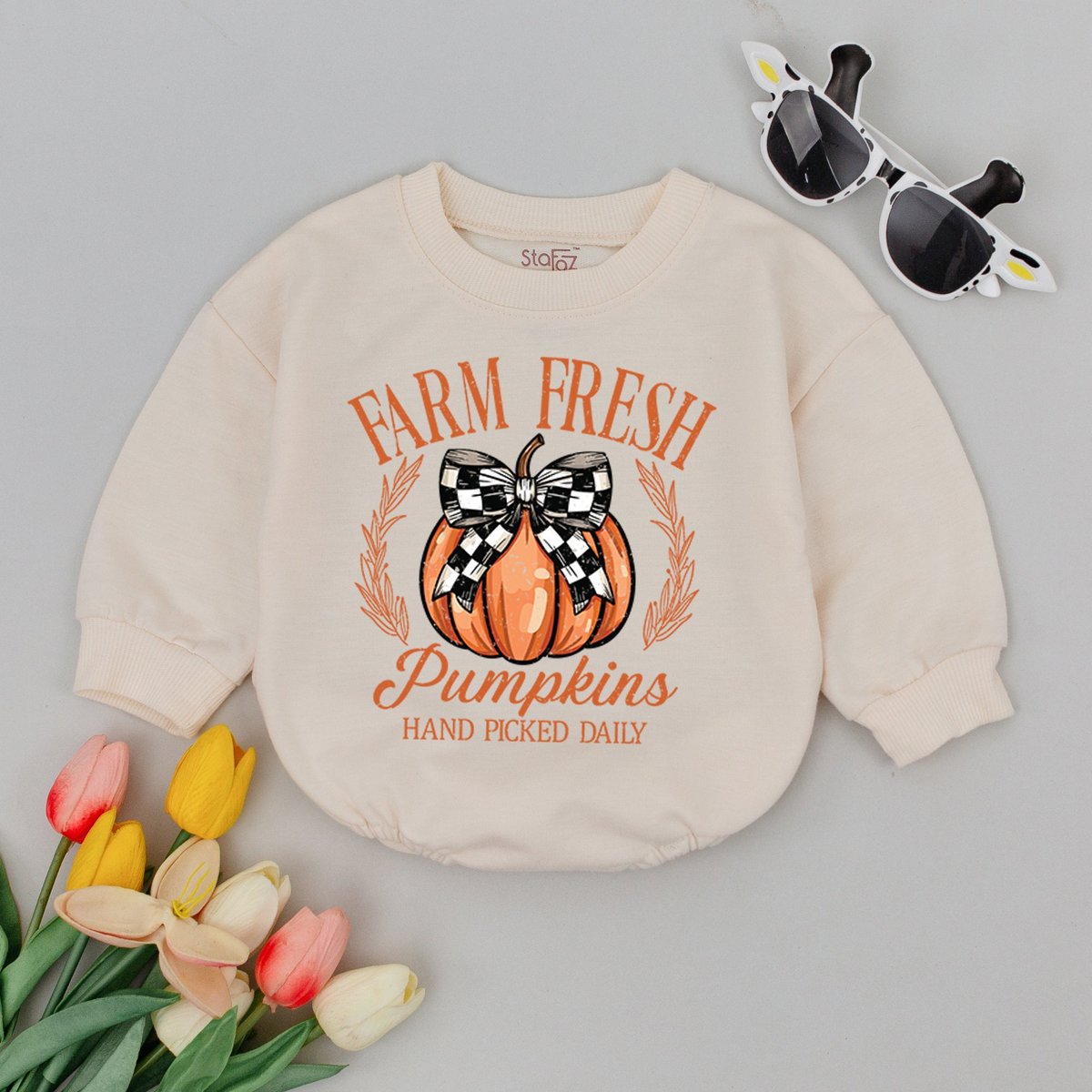 Farm Fresh Pumpkins Baby Romper Thanksgiving Infant Outfit Baby Girl Clothes Fall Baby Shower Gift