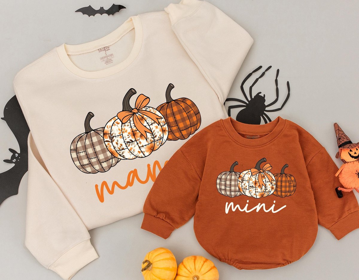 Mama and Mini Pumpkin Sweatshirts Mommy and Me Sweaters Personalized Matching Outfits Kids Fall Shir 436