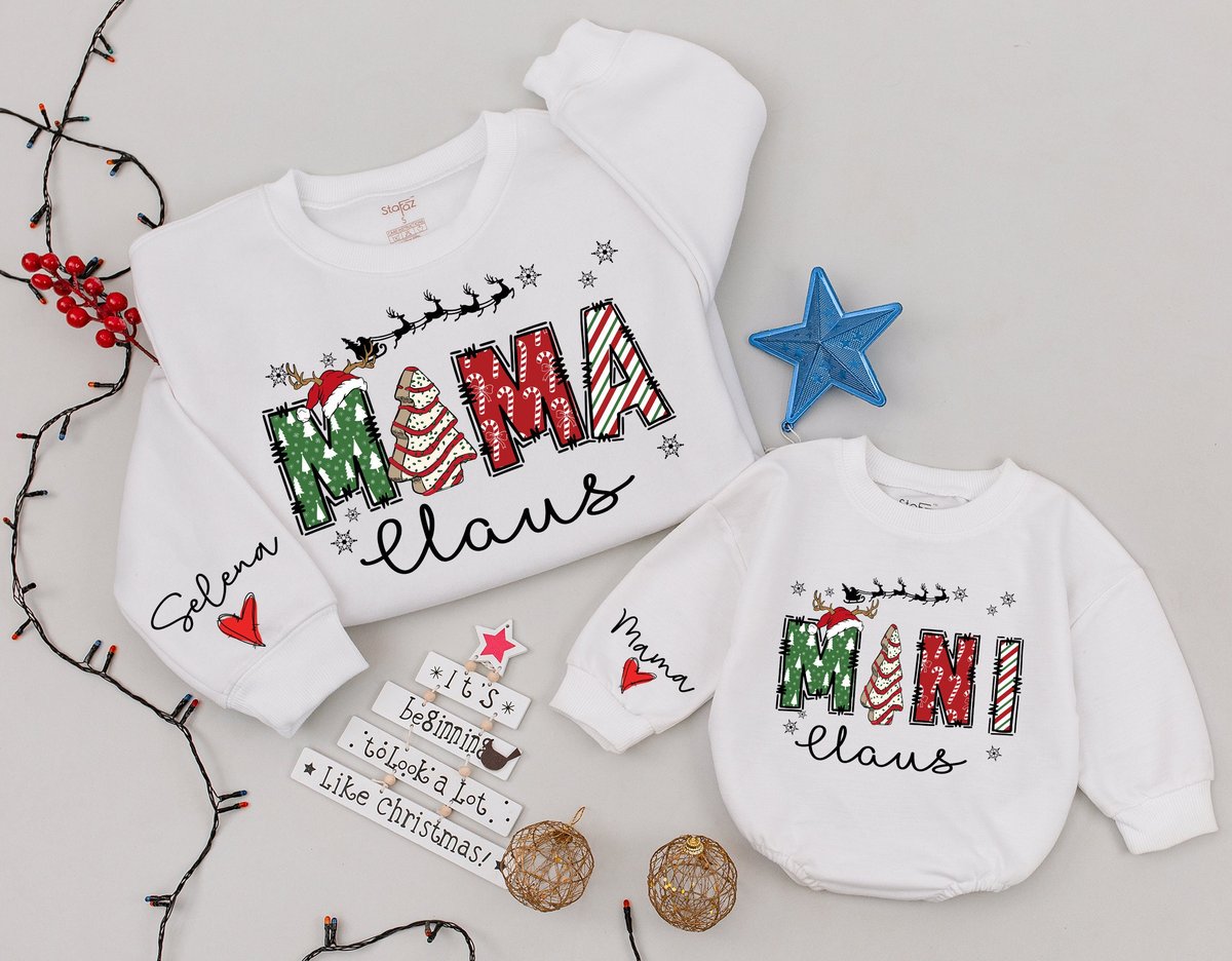 Mama claus and Mini claus Sweatshirt Mom and Baby Matching Family Shirt Daughter Kid Sweatshirt Chri 178