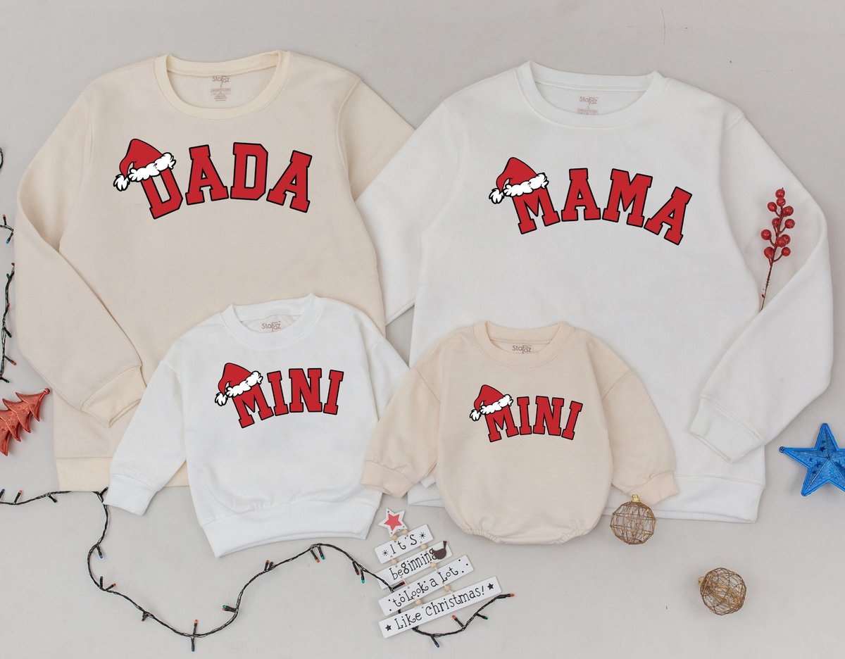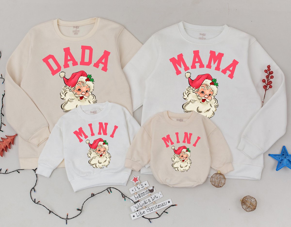 Mama Dada Mini Christmas Sweatshirts Retro Santa hat Mom Toddler Mother Daughter Outfit Toddler Chri 181