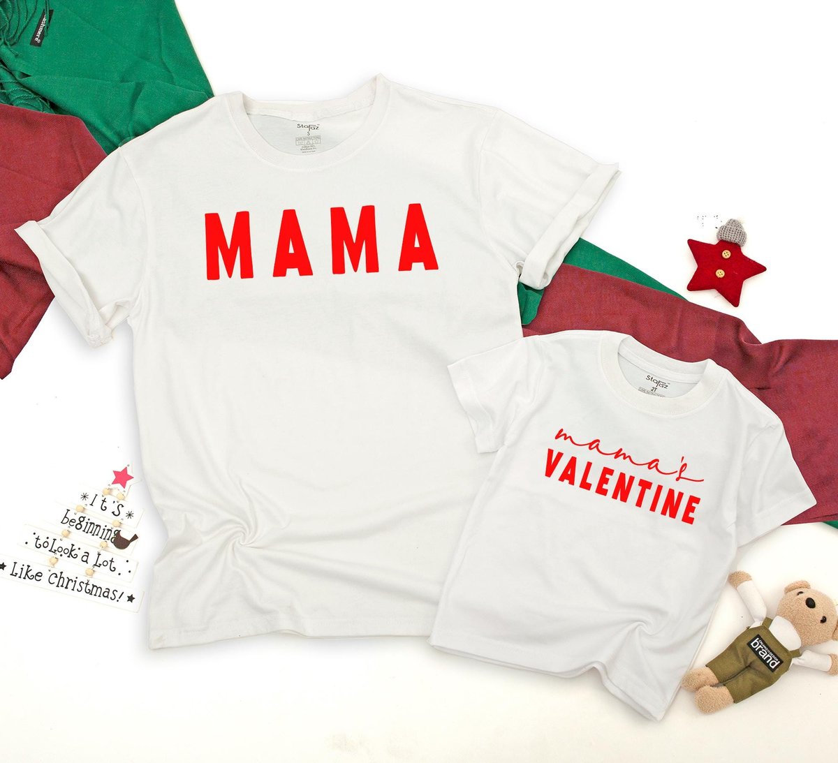 Mama and Mama’s Valentine T shirt Mom And Baby Matching Daughter Kid Retro Outfit Baby Romper Gifts 185
