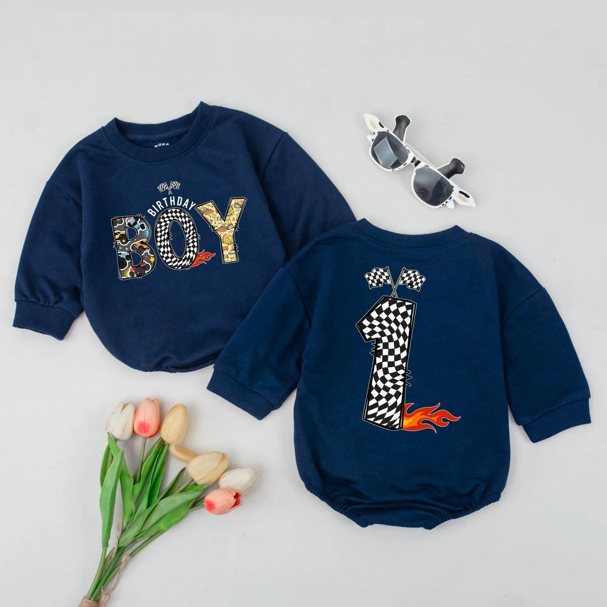 First Birthday Race Car Boy Romper Checkered Flag Toddler Outfit Race Theme Baby Clothes Newborn Rom 431