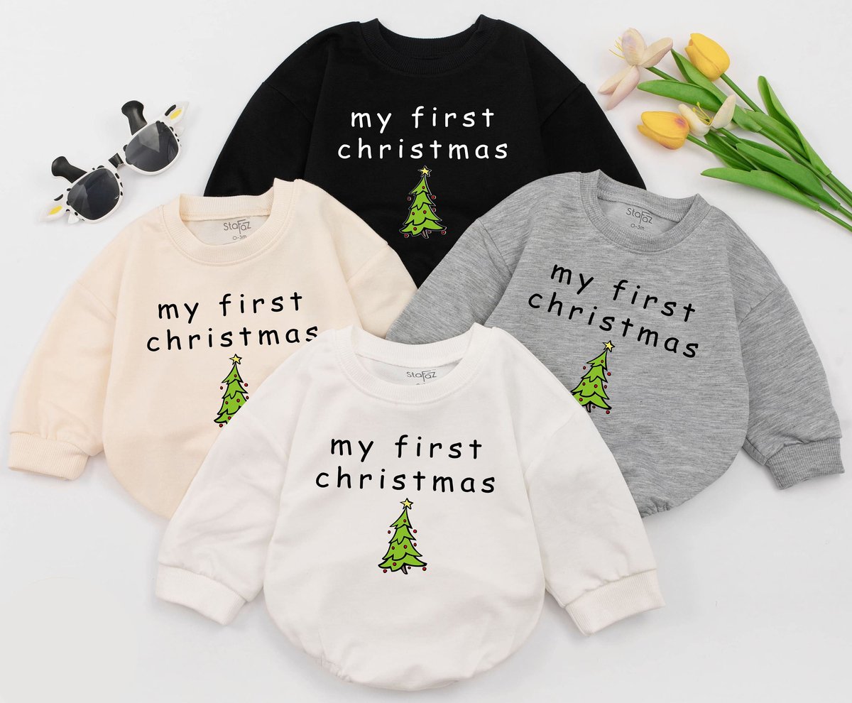 First Christmas Baby Outfit Baby Bubble Romper Christmas Baby Girl Christmas First Christmas Outfit