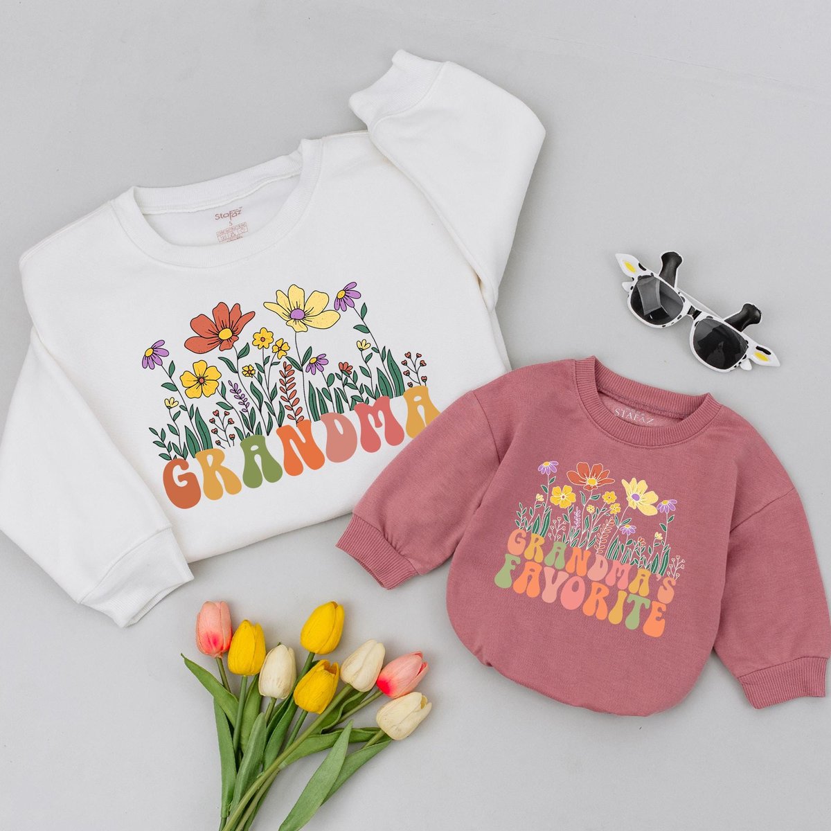 Personalized Grandma And Grandma’s Favorite Flower SweatshirtGift For Grammy Grandchild Newborn B 189