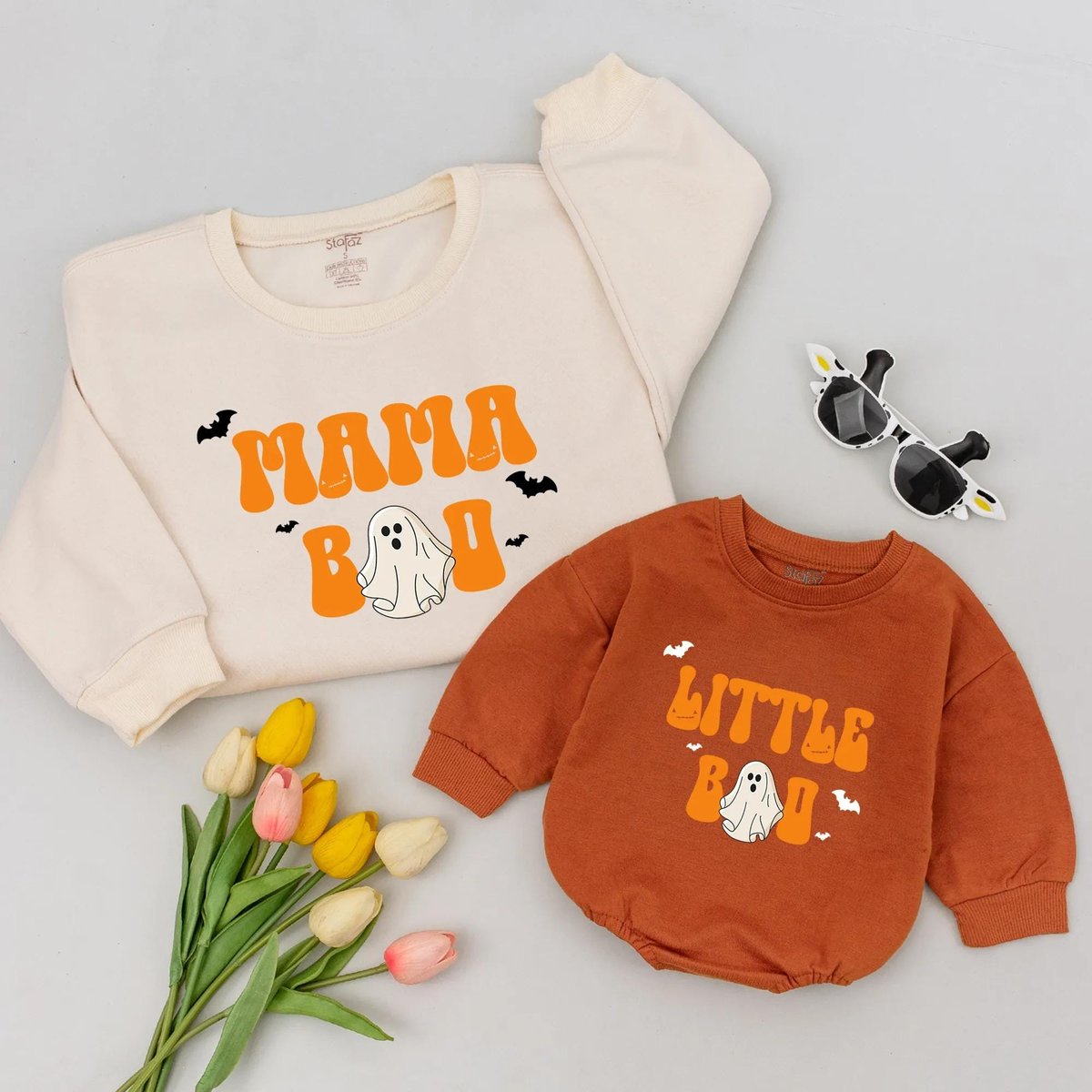 Mama Boo and Little Boo Fall Sweatshirt Mom And Me Halloween Sweatshirt Little Boo Baby Bubble Rompe 436