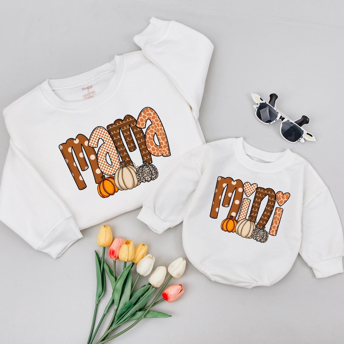 Mama Mini Pumpkin Fall Sweatshirts Matching Family Outfits Mommy and Me Sweaters Thanksgiving Shirt 173