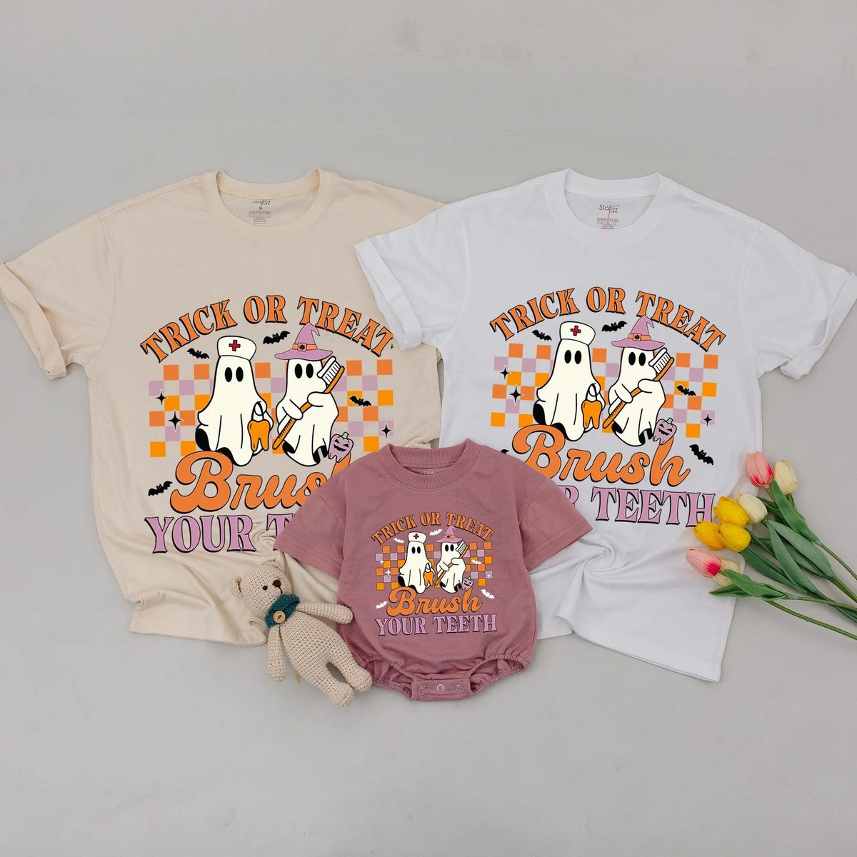 Funny Halloween Baby Shirt Trick or Treat Brush Your Teeth Halloween Baby Onesie Custom Cute Hallowe 435