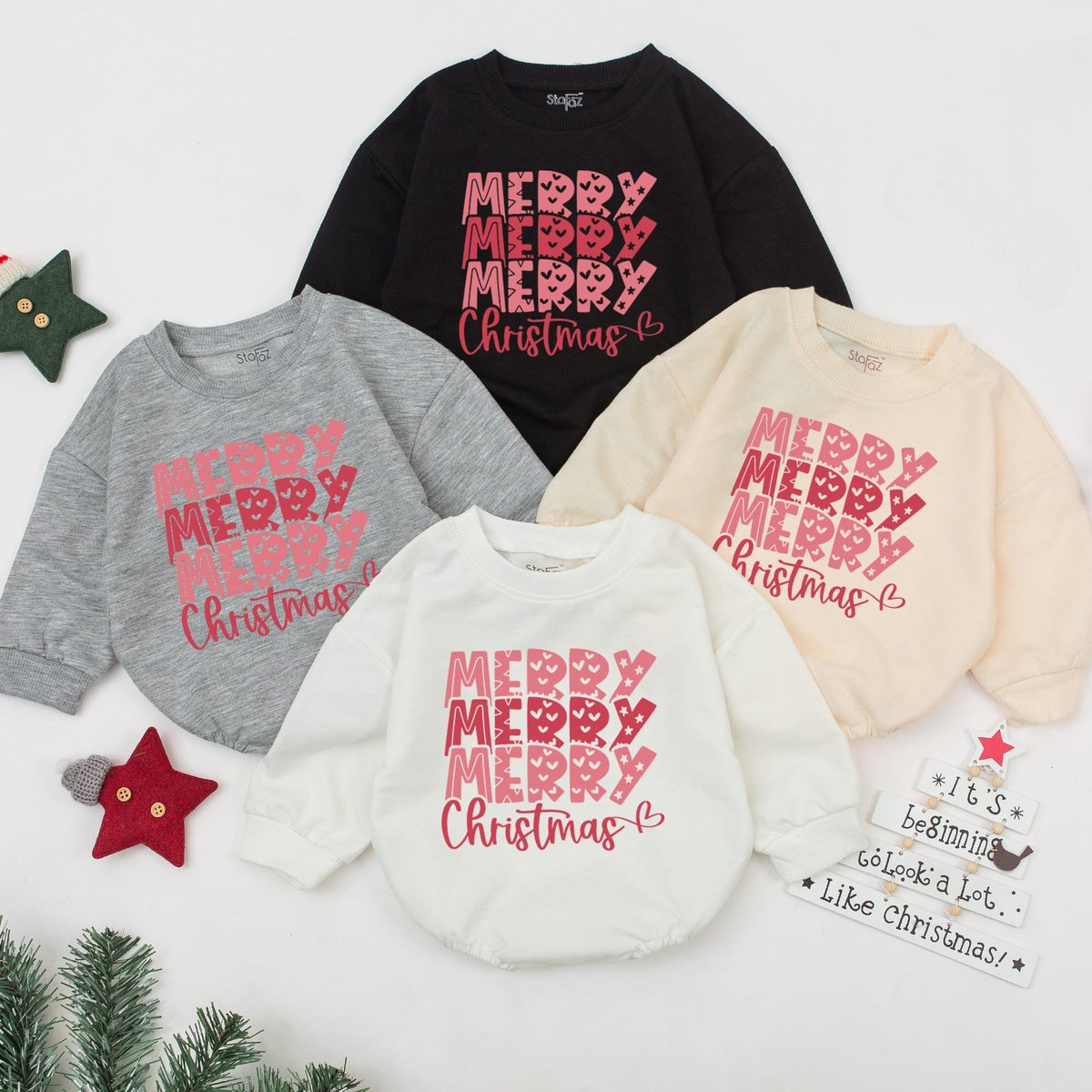 Baby Girl Christmas Outfit Retro Holiday Bubble Romper Sweatshirt 1st Christmas Romper Toddler Fa La 154